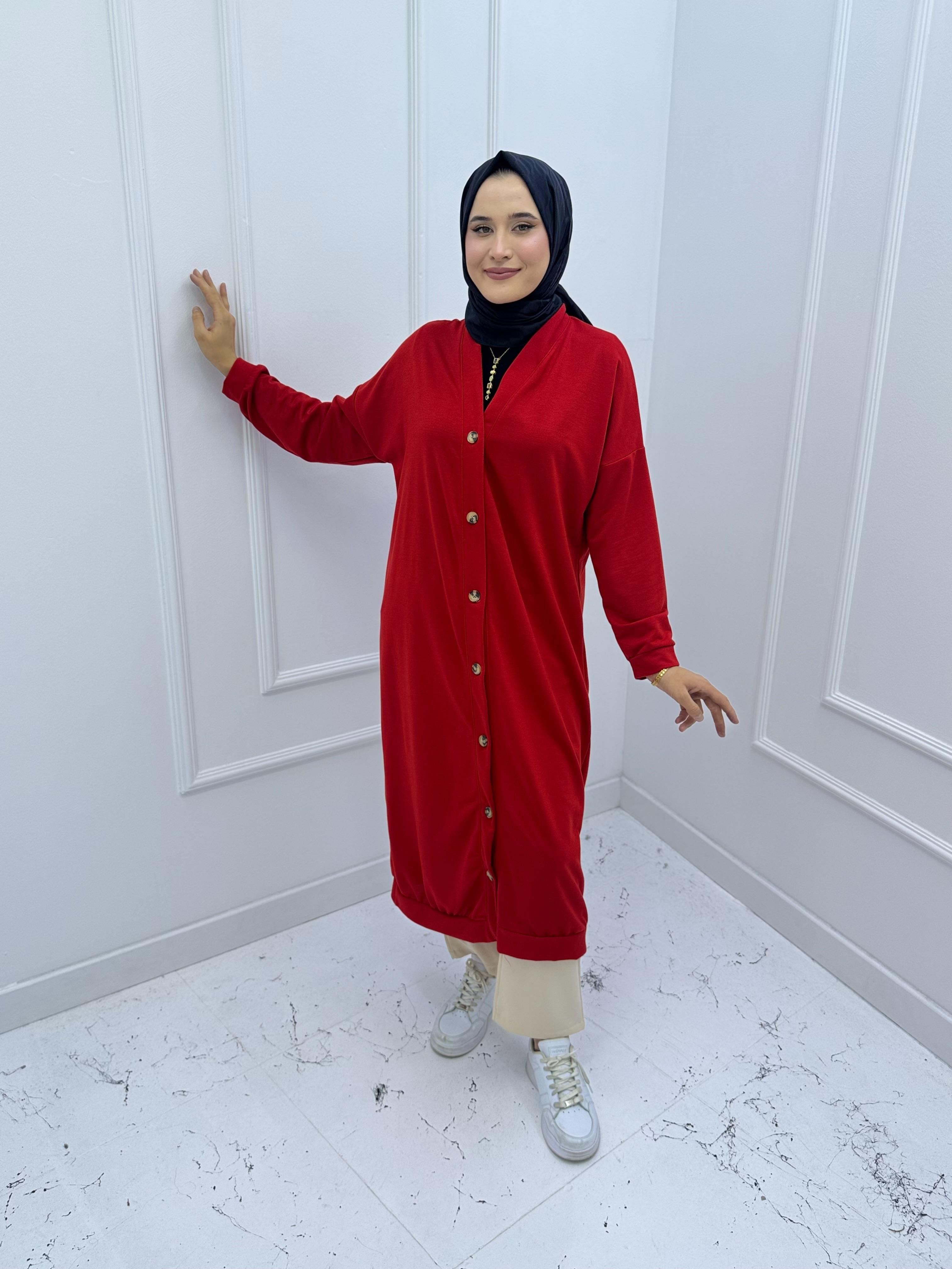 3136 İKİ İPLİK KUMAŞ DÜĞMELİ KIRMIZI