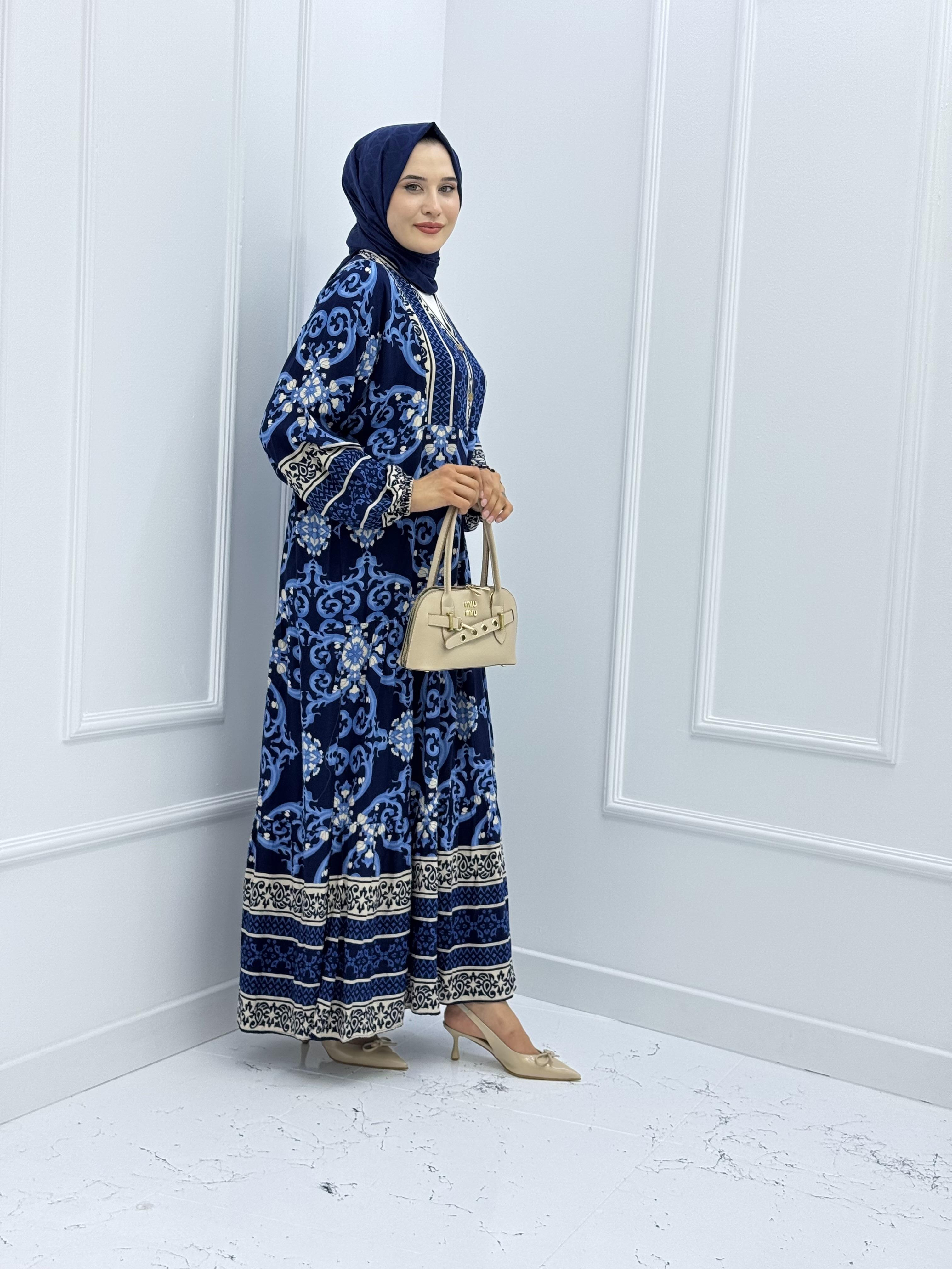 Alaçatı model, karışık desenli ve etekleri fırfırlı elbise; salaş ve romantik tarzıyla dikkat çeken, yaz aylarına uygun hafif bir tasarımdır. Pamuk viskon kumaşı sayesinde yumuşak dokulu, serin tutan ve rahat bir kullanım sunar. Hareketli fırfır detayları ve canlı desenleriyle bohem şıklığı yansıtan bu model, özellikle tatil ve günlük kullanım için idealdir.