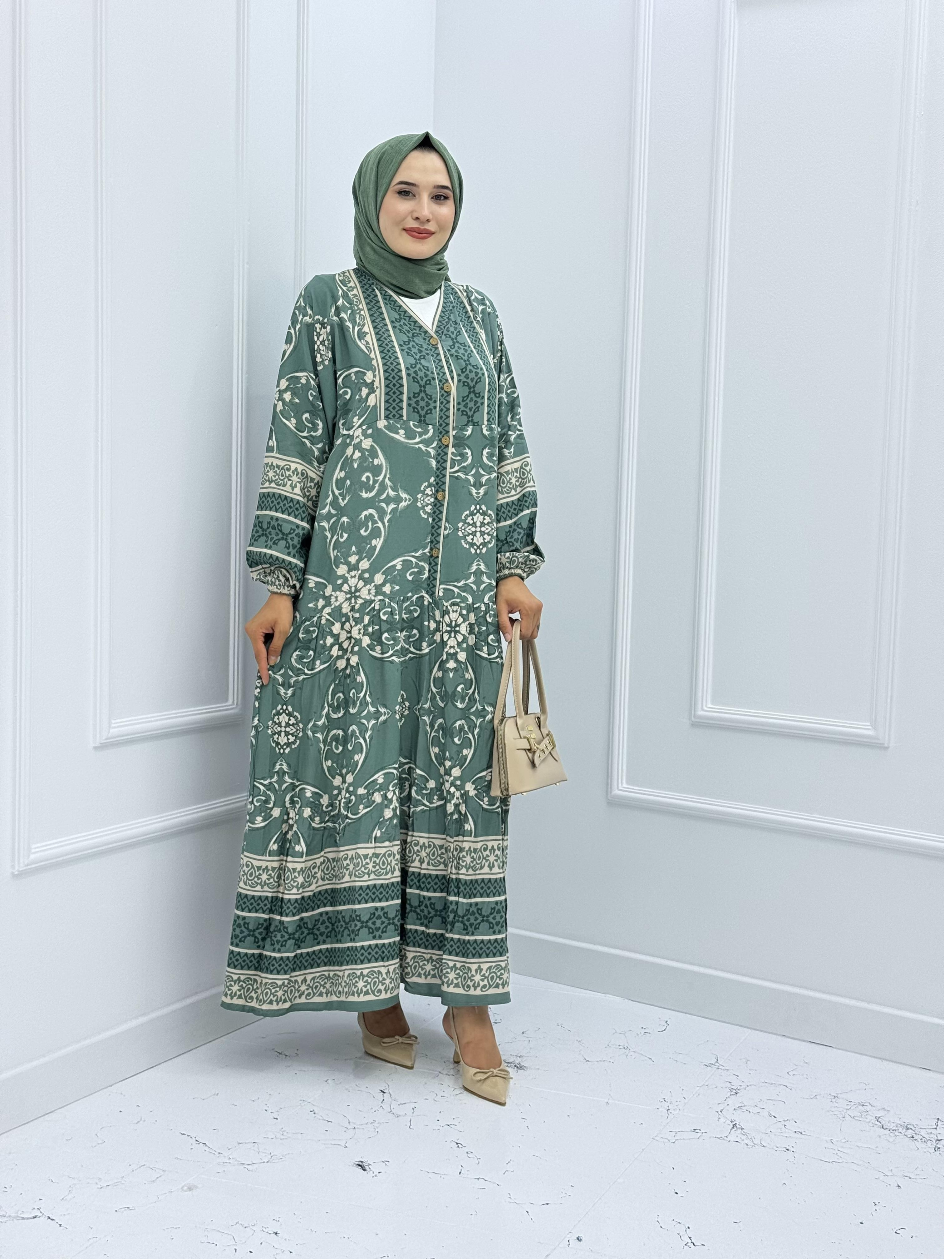 0511alaçatı model karışık desen etekleri fırfırlı elbise su yeşili