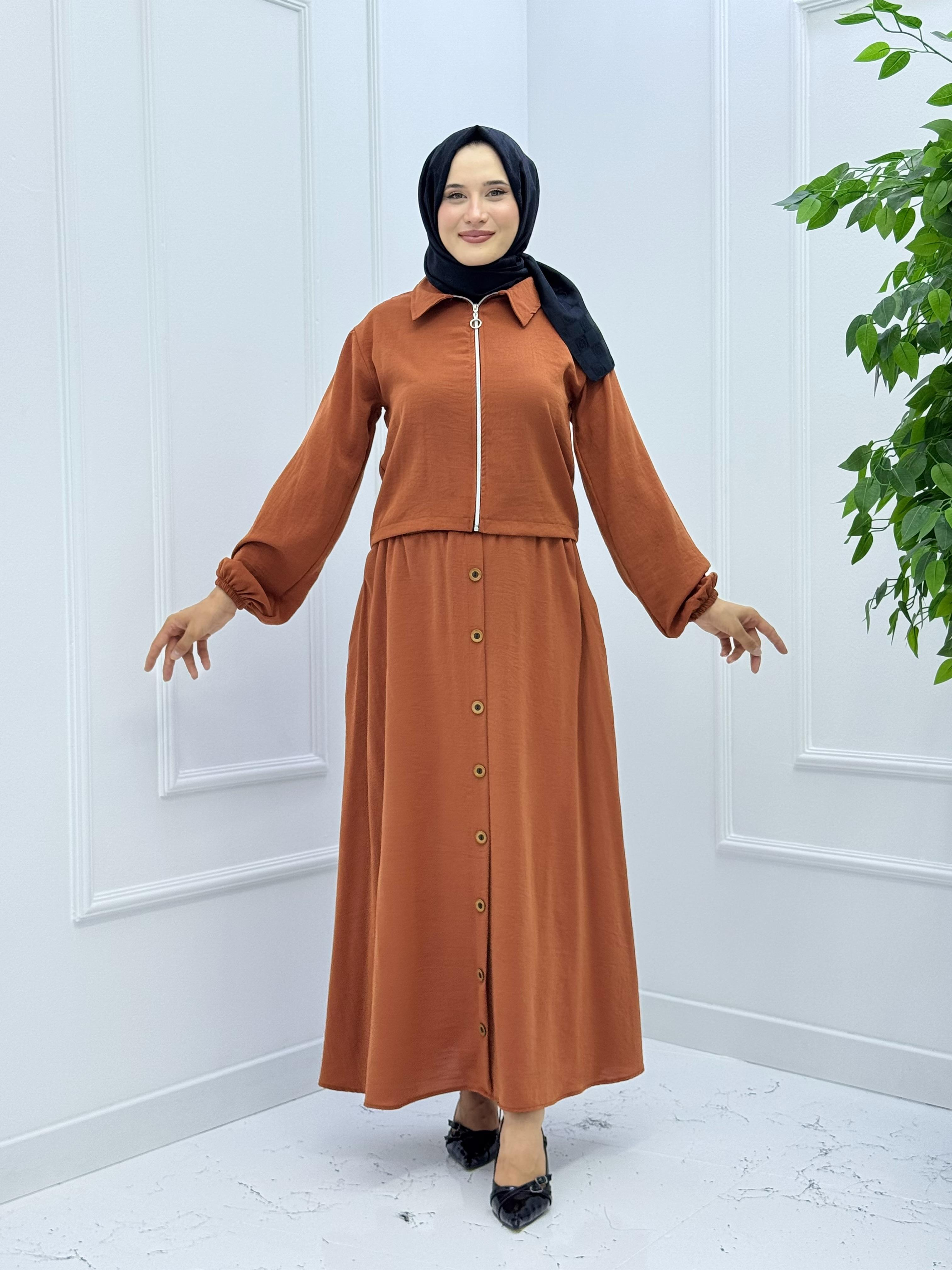 0917 ÇİLEK AYROBİN KUMAŞ ETEKLİ TAKIM KİREMİT