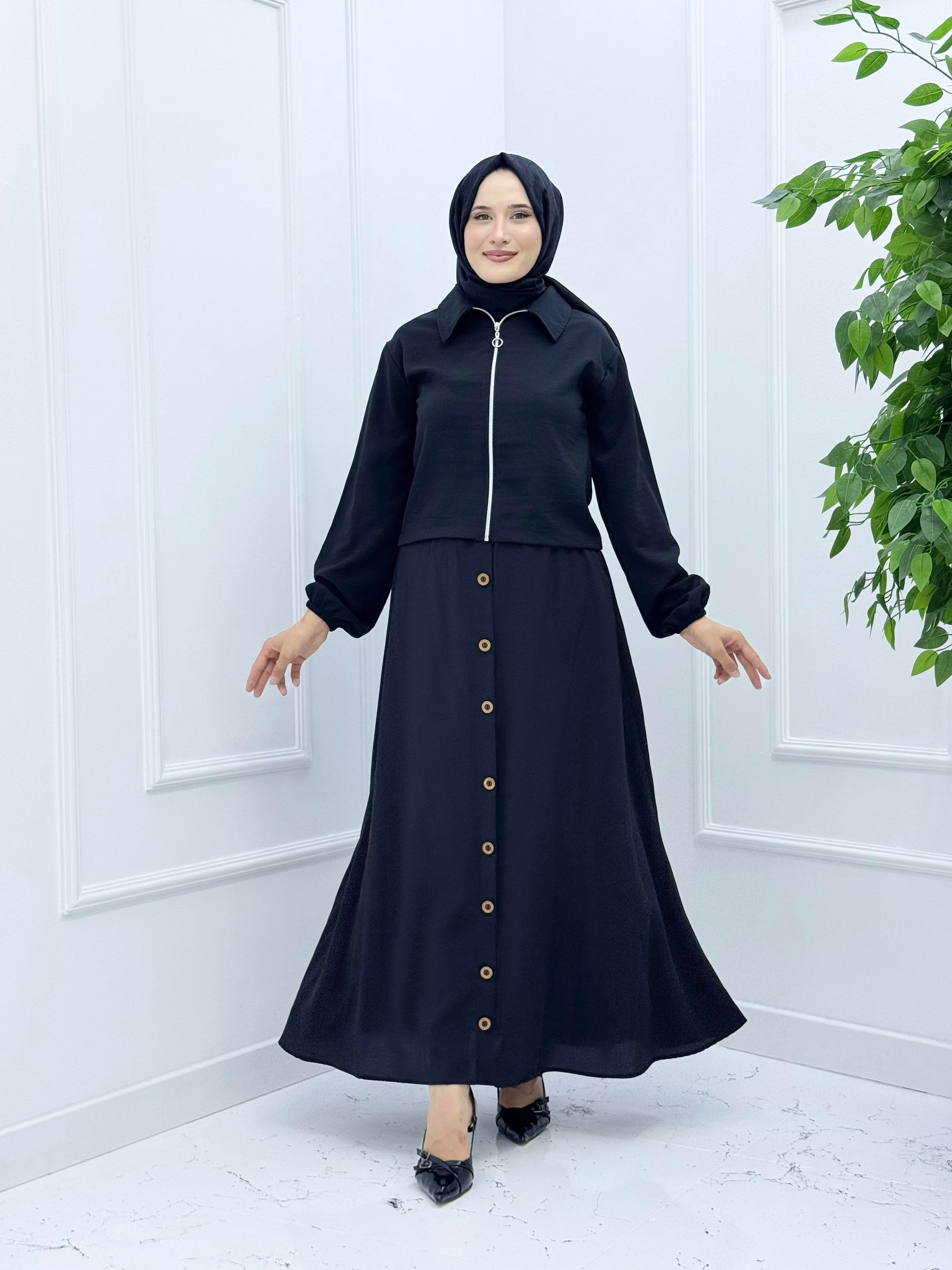 0917 ÇİLEK AYROBİN KUMAŞ ETEKLİ TAKIM SİYAH