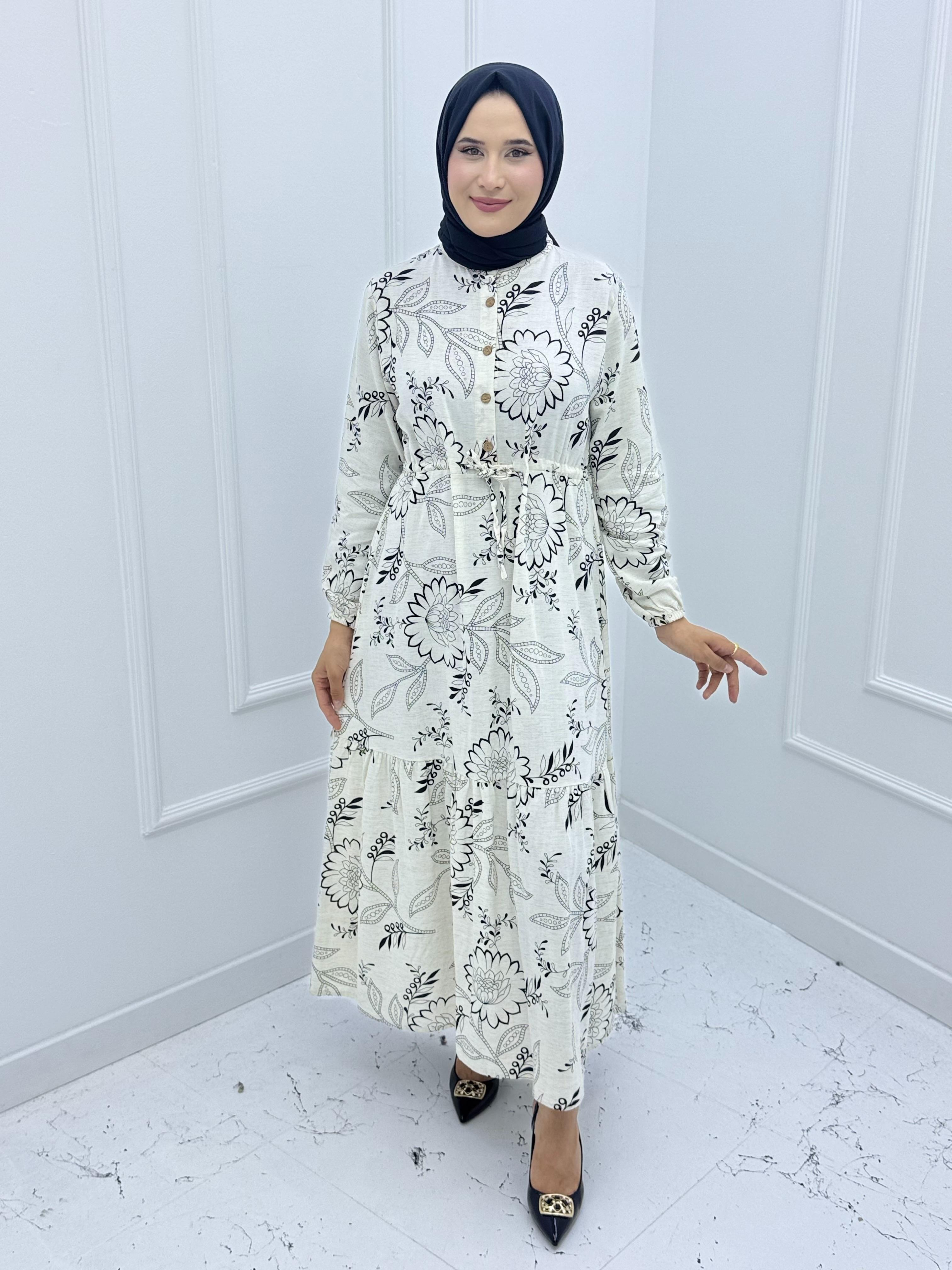 Viskon keten kumaştan üretilmiştir 40-42:108 cm 44-46:114 cm 48-50:120 cm 52-54:130 cm elbise boy:1.40 cm manken boy:1.70 manken kilo:65