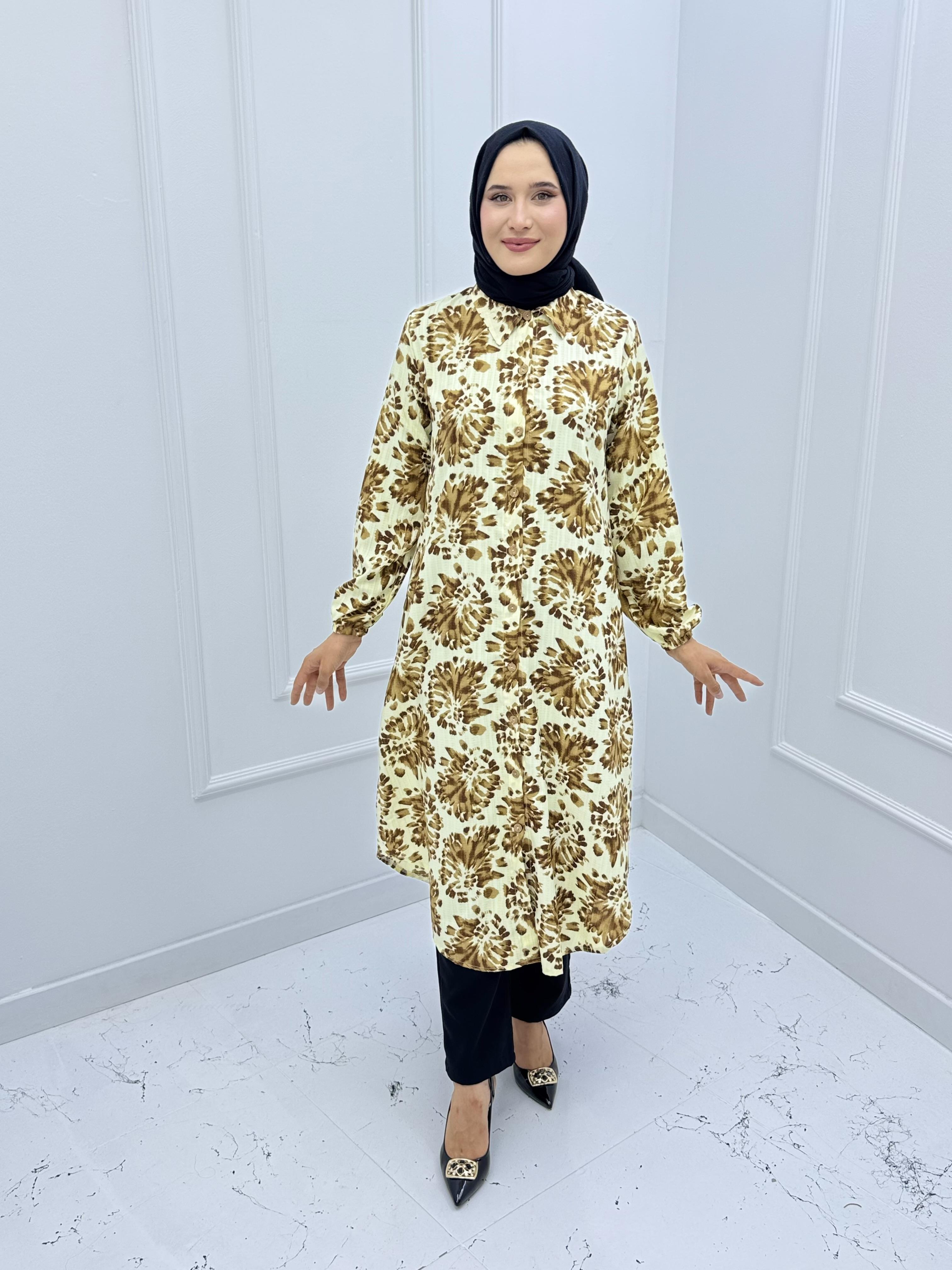 1218 KAŞ KUMAŞ DESENLİ TUNİK KAHVERENGİ (1218 )