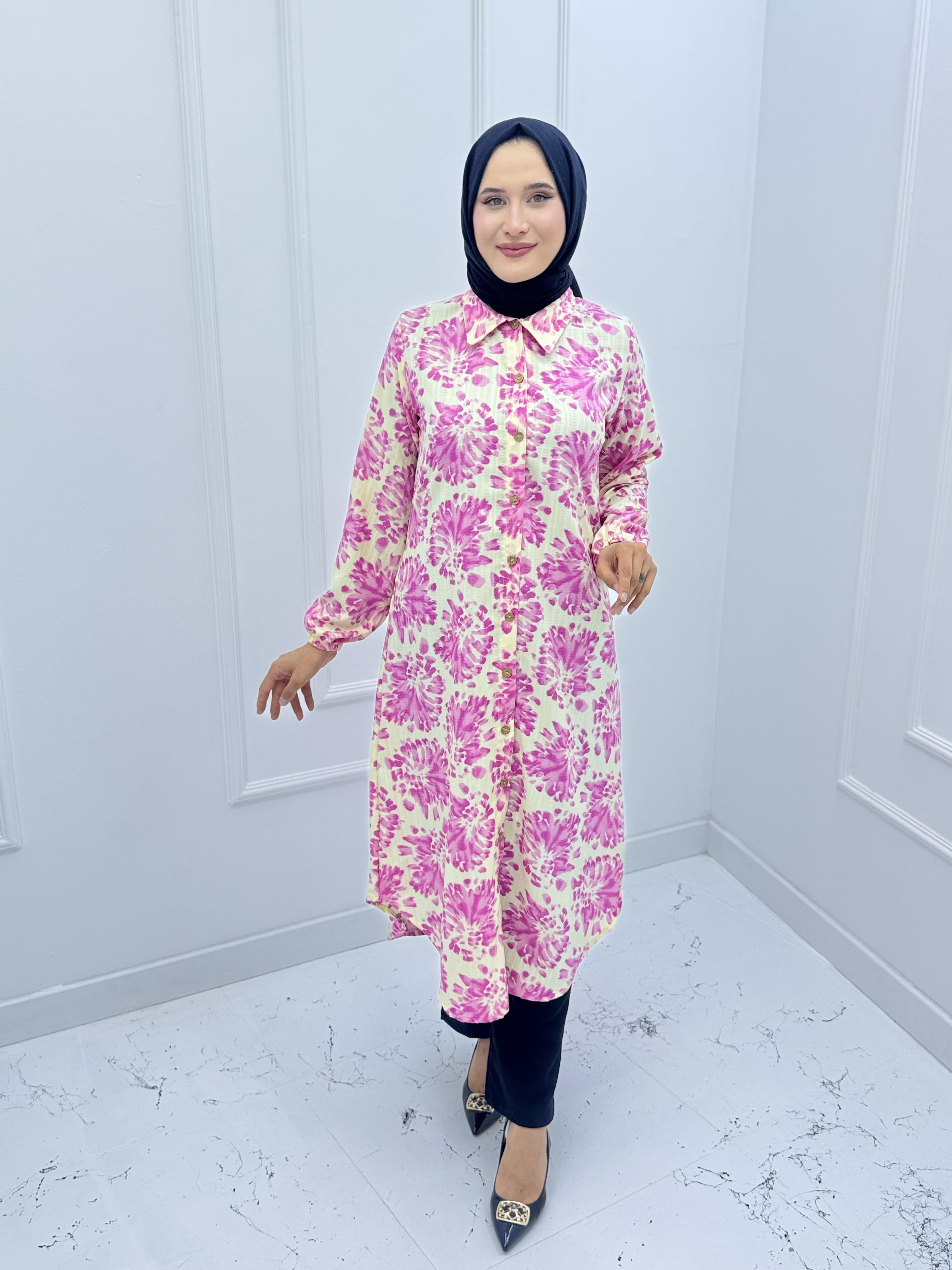 1218 KAŞ KUMAŞ DESENLİ TUNİK PEMBE (1218 )