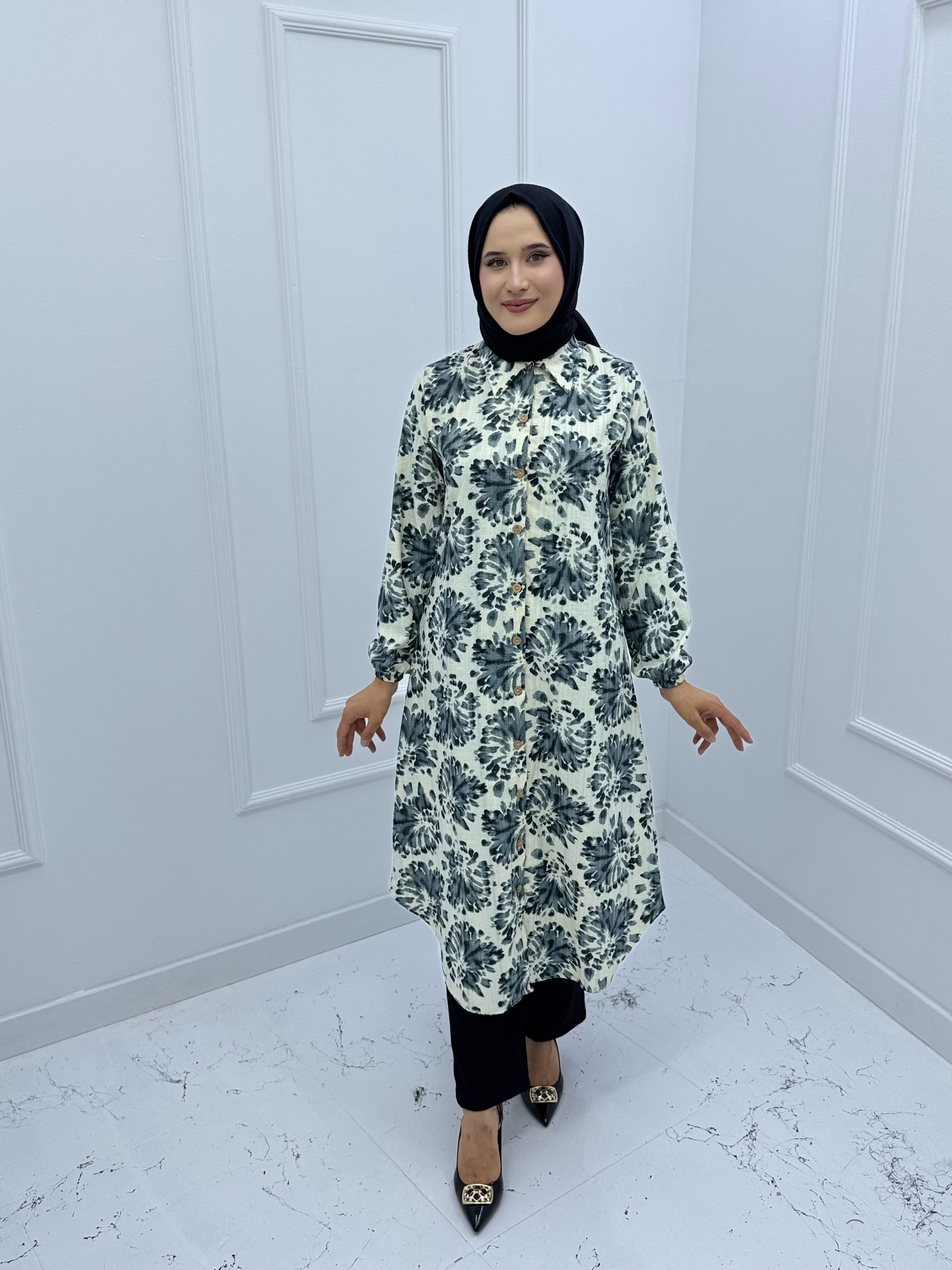 1218 KAŞ KUMAŞ DESENLİ TUNİK SİYAH