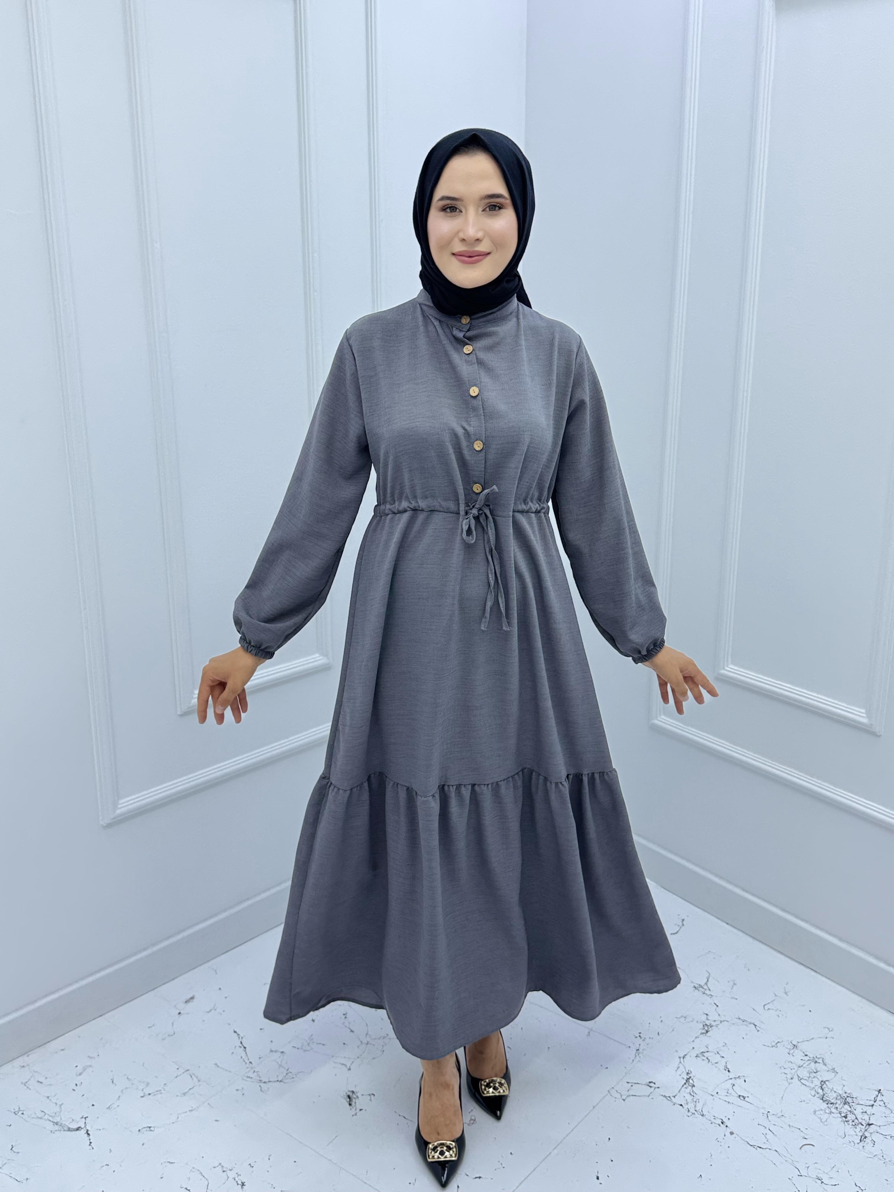 1234 yarıya kadar düğmeli belden bağlamlı elbise GRİ (1234)