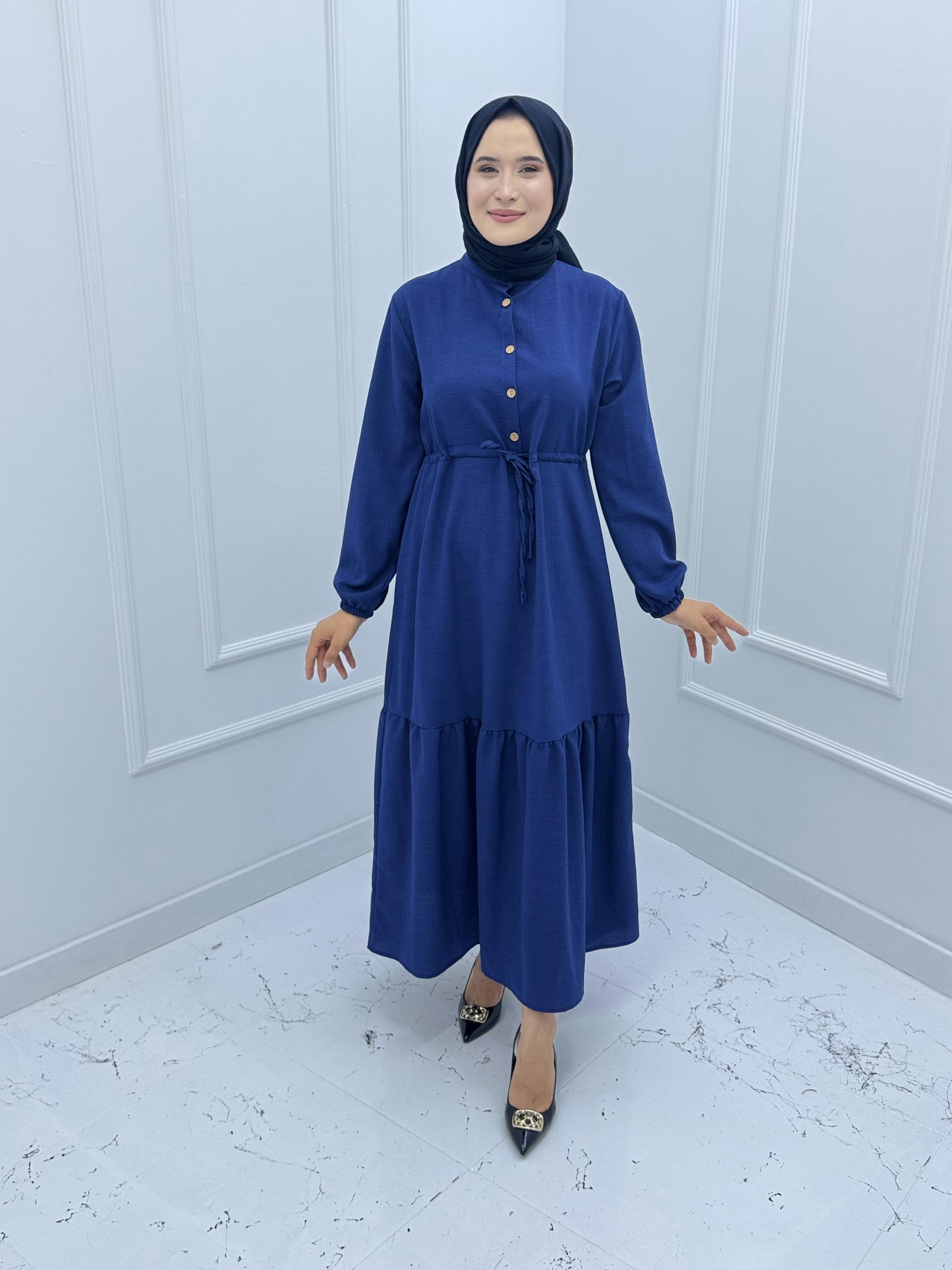 1234 yarıya kadar düğmeli belden bağlamlı elbise lacivert (1234)