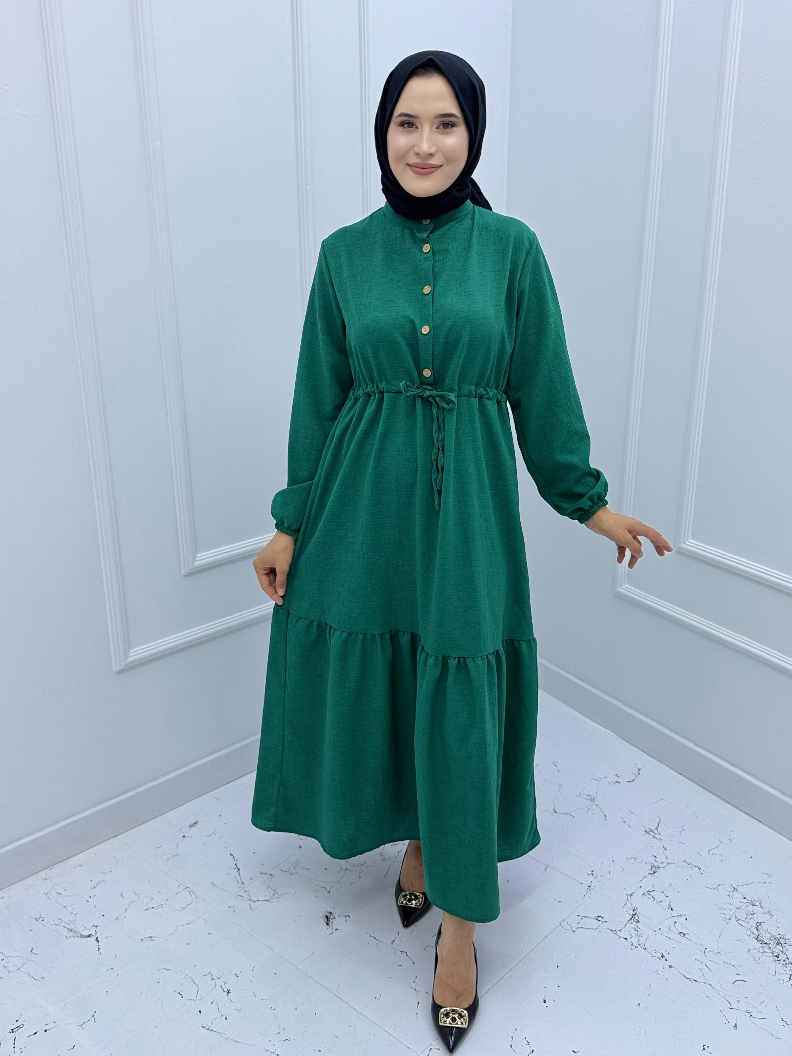 1234 yarıya kadar düğmeli belden bağlamlı elbise  YEŞİL