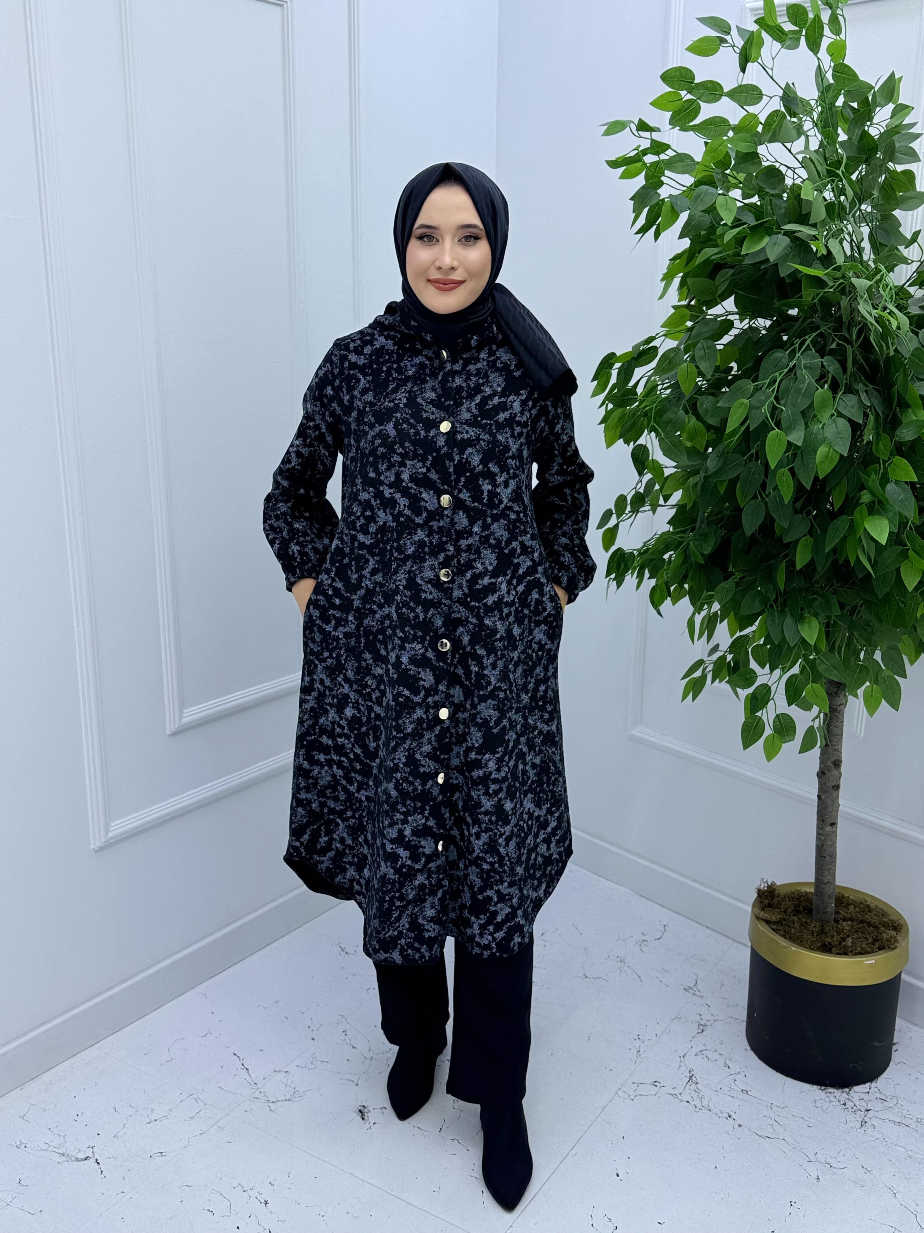 1621 KAŞE KUMAŞ BOYDAN DÜĞMEL MERMER DESEN CEKET GRİ