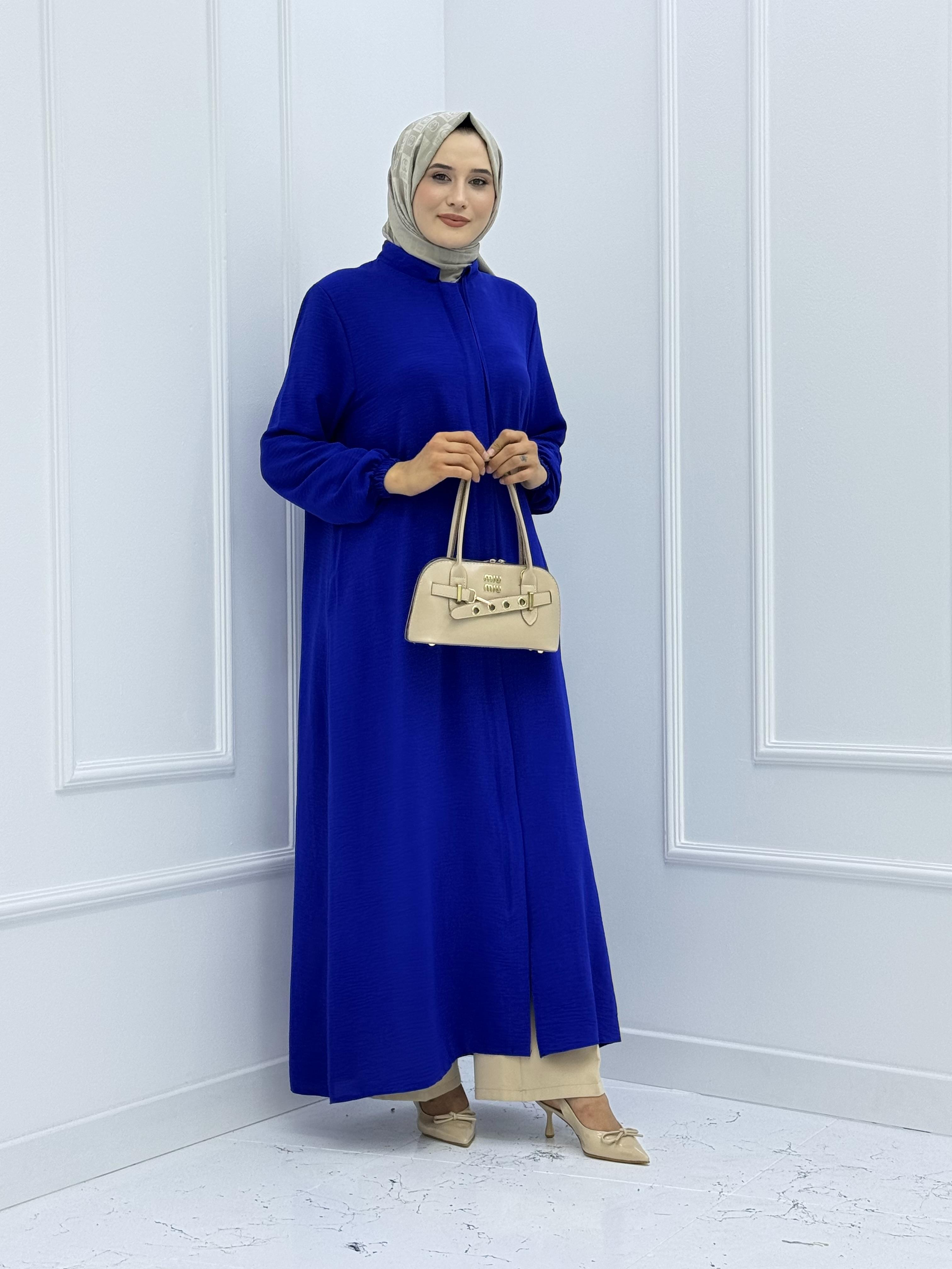 1789 AYROBİN KUMAŞ BOYDAN FERMUARLI FERACE SAKS MAVİSİ (1789)