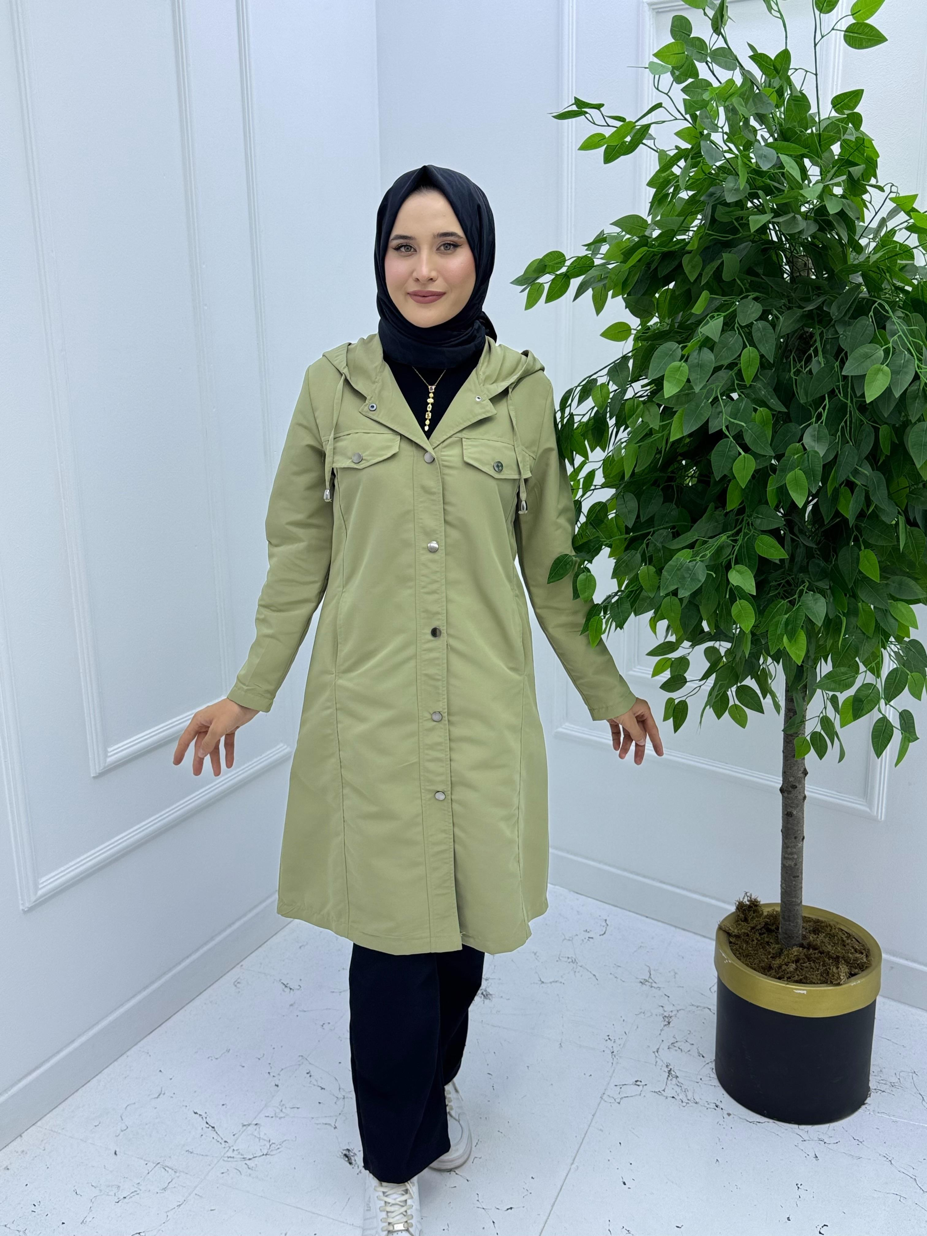 2008 BONDİT KUMAŞ ÇITÇITLI CEPLİ UZUN YAĞMURLUK YEŞİL