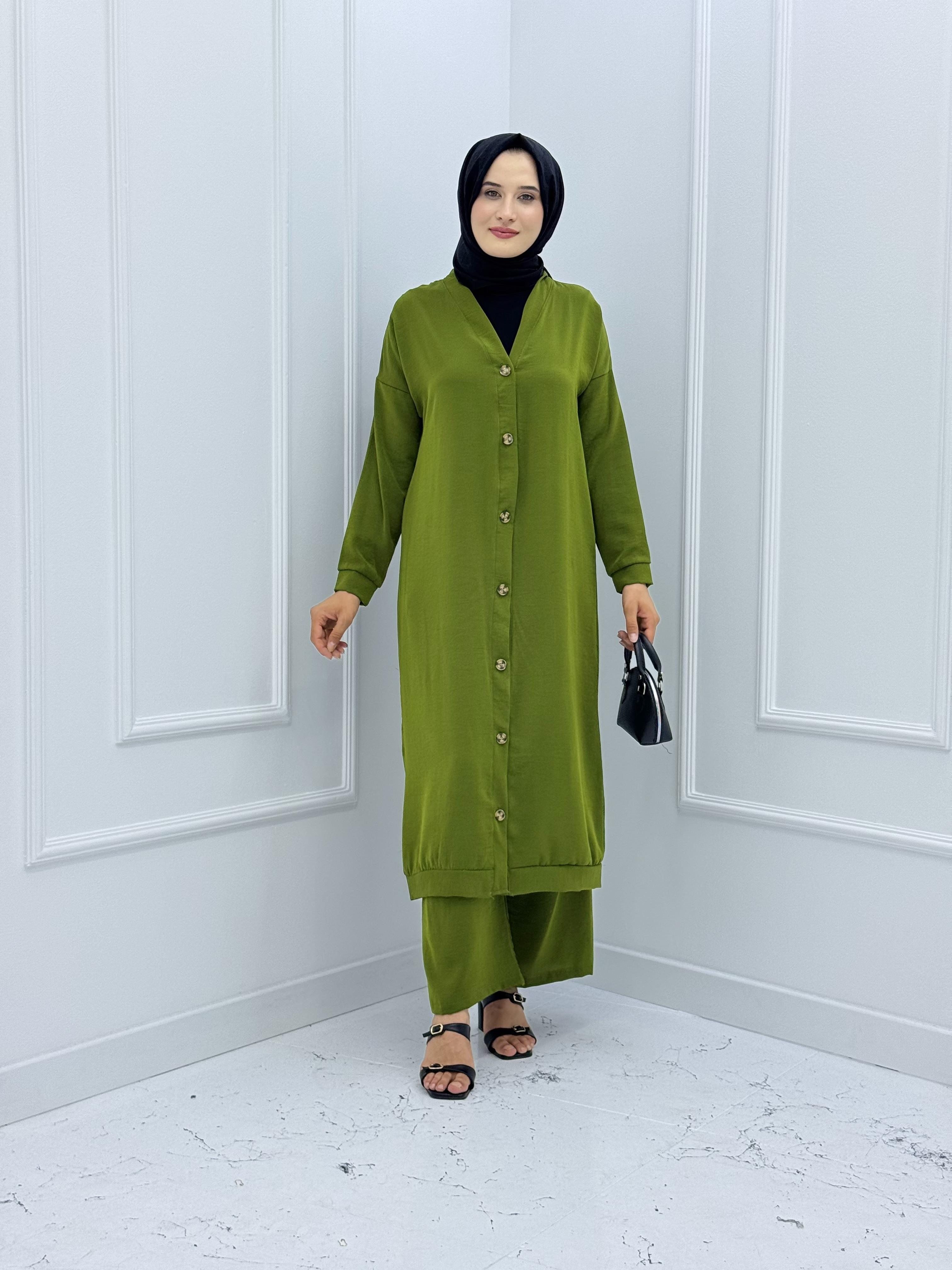Ayrobin kumaş takım, hafif, dökümlü ve yumuşak yapıya sahip ayrobin kumaştan üretilen ikili veya çok parçalı giyim setidir. Terletmeyen, nefes alabilen ve kırışmaya karşı dayanıklı olması sayesinde özellikle yaz ve bahar aylarında tercih edilir. Şıklığı ve rahatlığı bir arada sunan bu takımlar; günlük kullanım, ofis şıklığı veya özel gün kombinleri için ideal bir seçenektir.