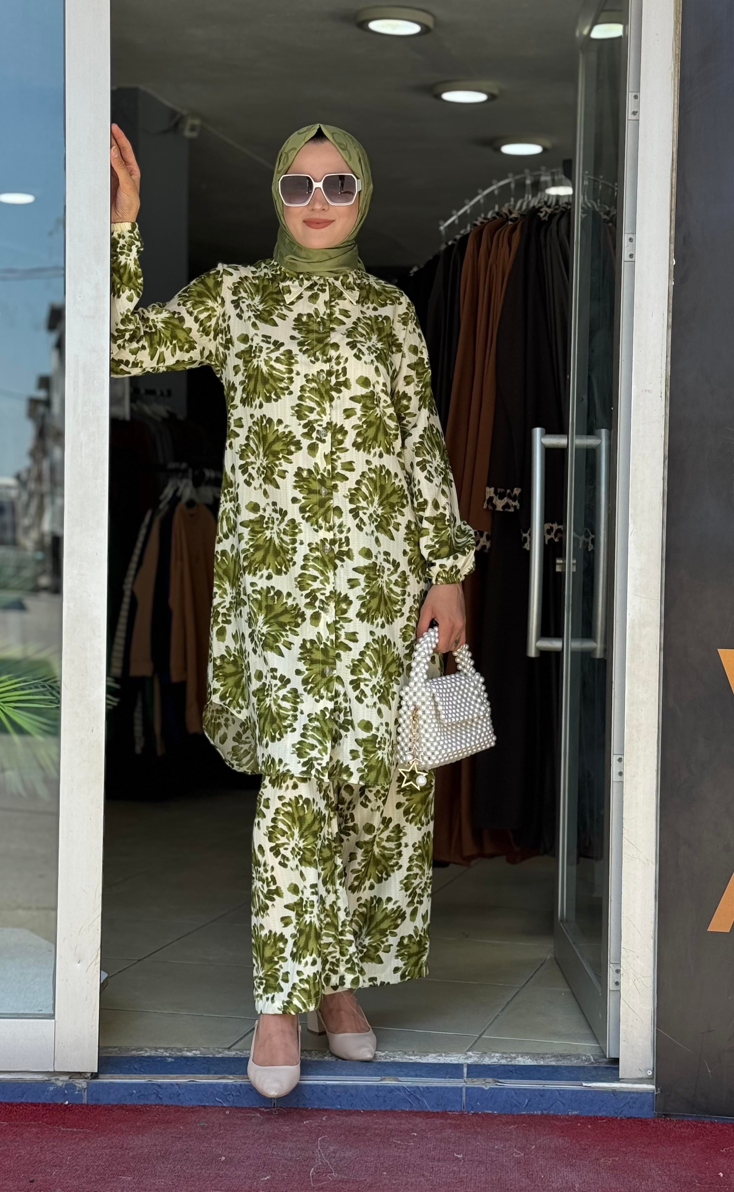 Yonca desenli kaş kumaş takım, yumuşak dokulu ve tok yapılı kaş kumaşı sayesinde şık ve konforlu bir kullanım sunar. Yonca deseniyle modern ve zarif bir görünüm sağlar. Günlük ve özel kombinlerde rahatlıkla tercih edilebilir.