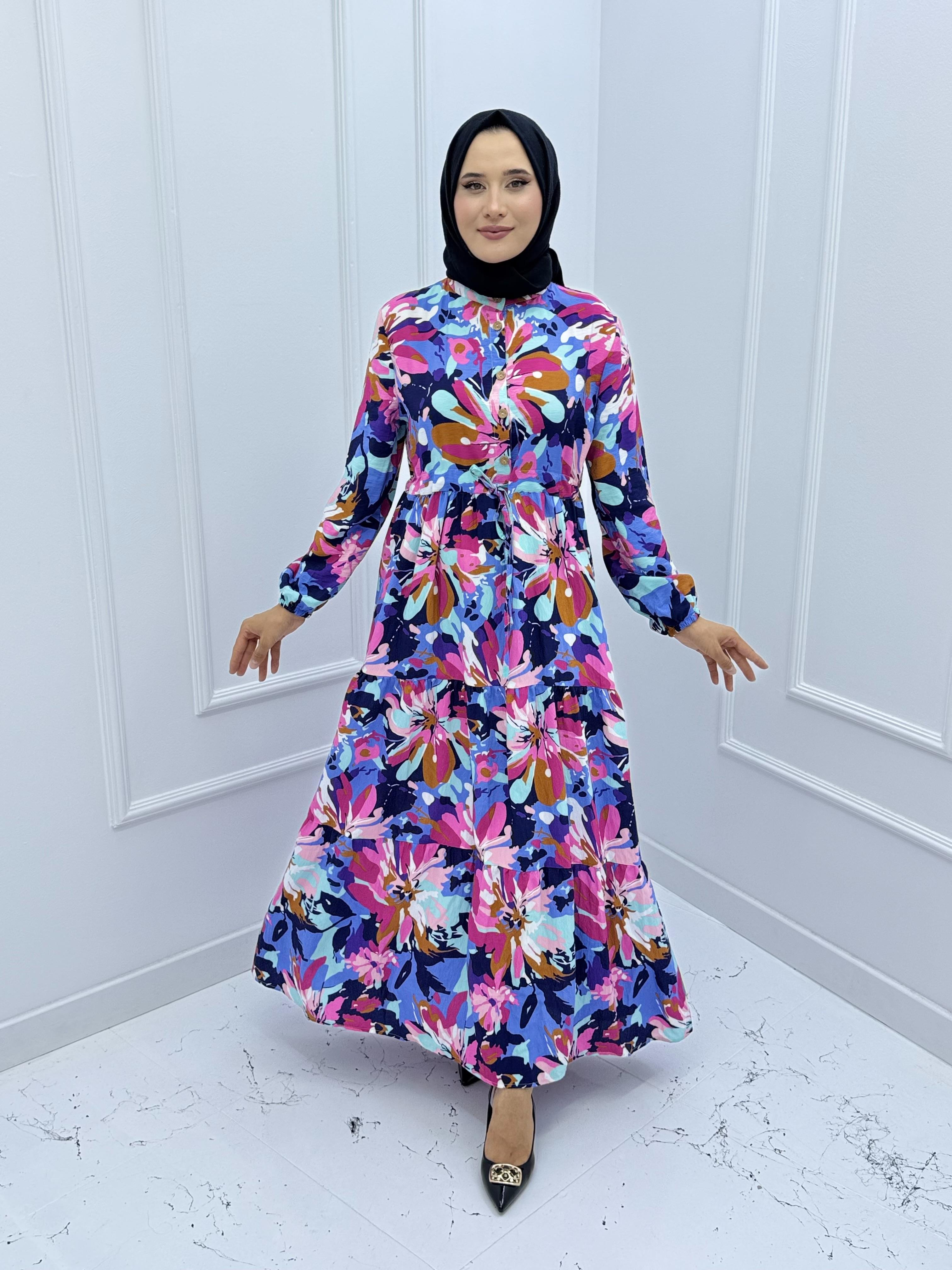 3789 MODAL KUMAŞ ÇİÇEK DESENLİ ELBİSE ÇOK  RENKLİ 1