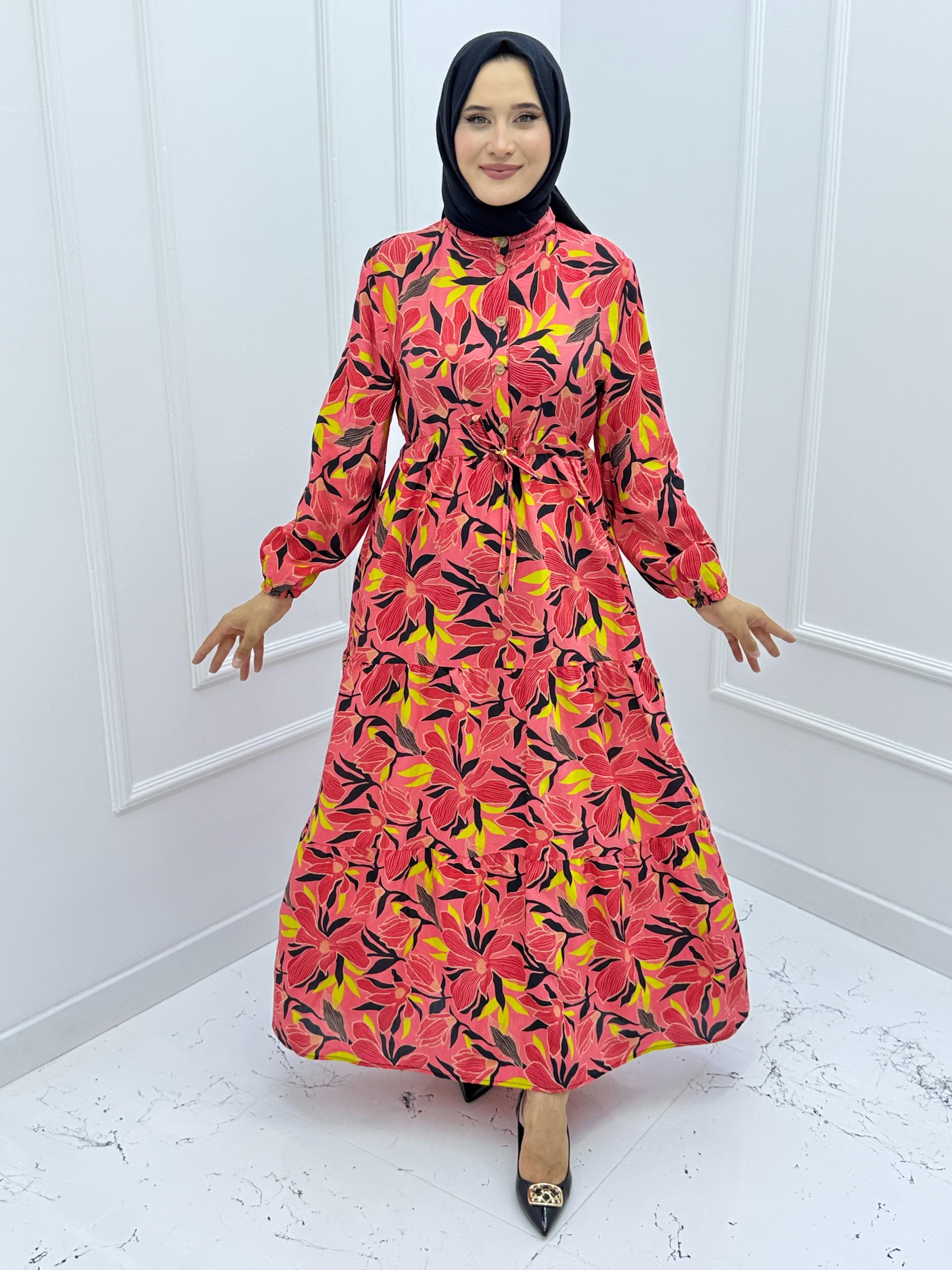 3789 MODAL KUMAŞ ÇİÇEK DESENLİ ELBİSE ÇOK  RENKLİ 12