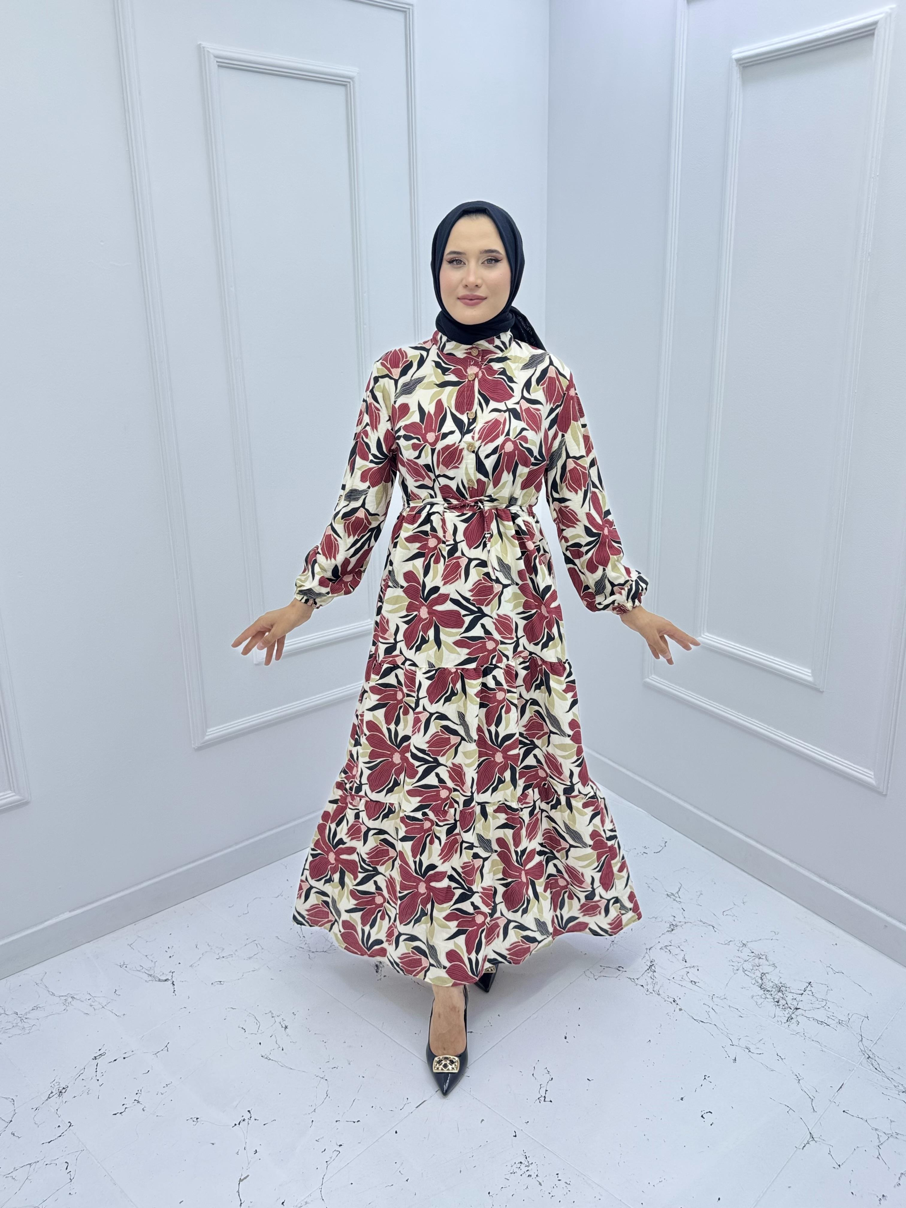 3789 MODAL KUMAŞ ÇİÇEK DESENLİ ELBİSE ÇOK RENKLİ 13 (3789)