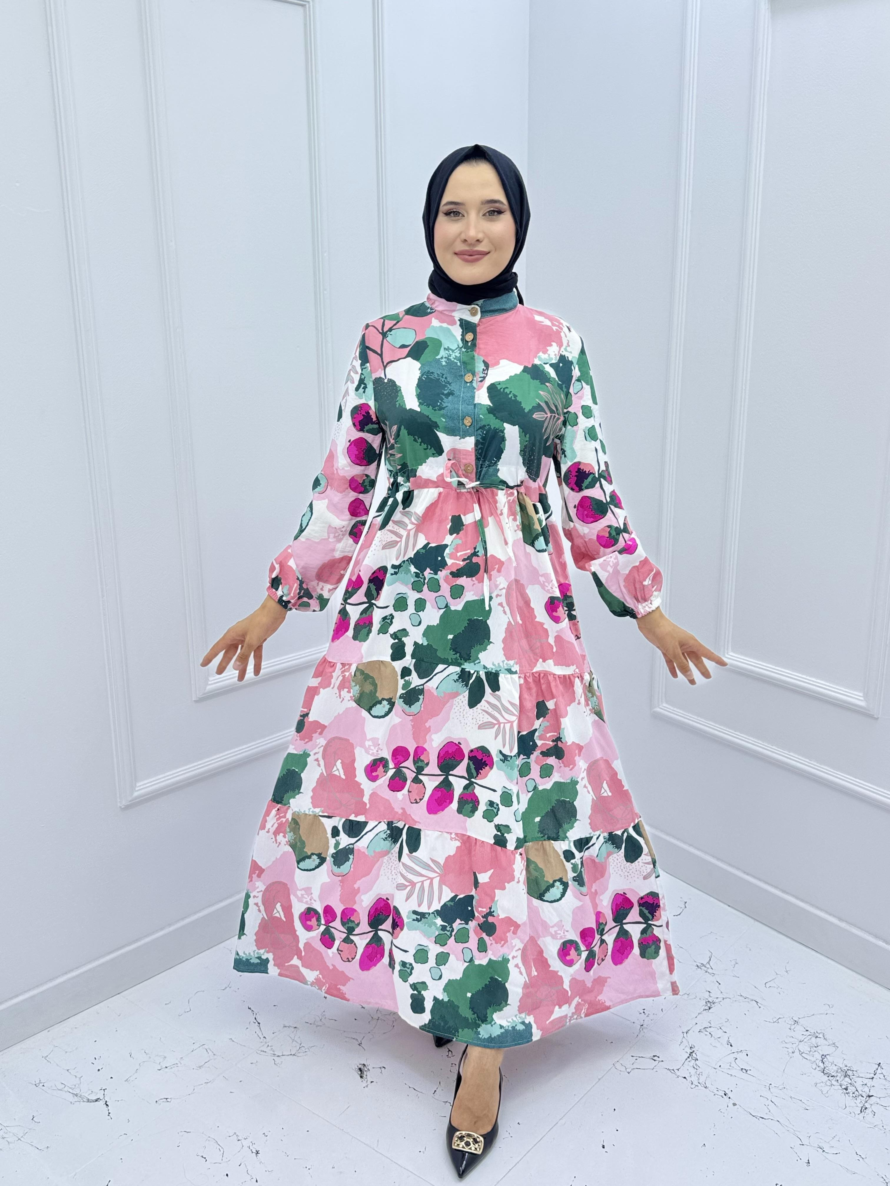 3789 MODAL KUMAŞ ÇİÇEK DESENLİ ELBİSE ÇOK RENKLİ 14 (3789)