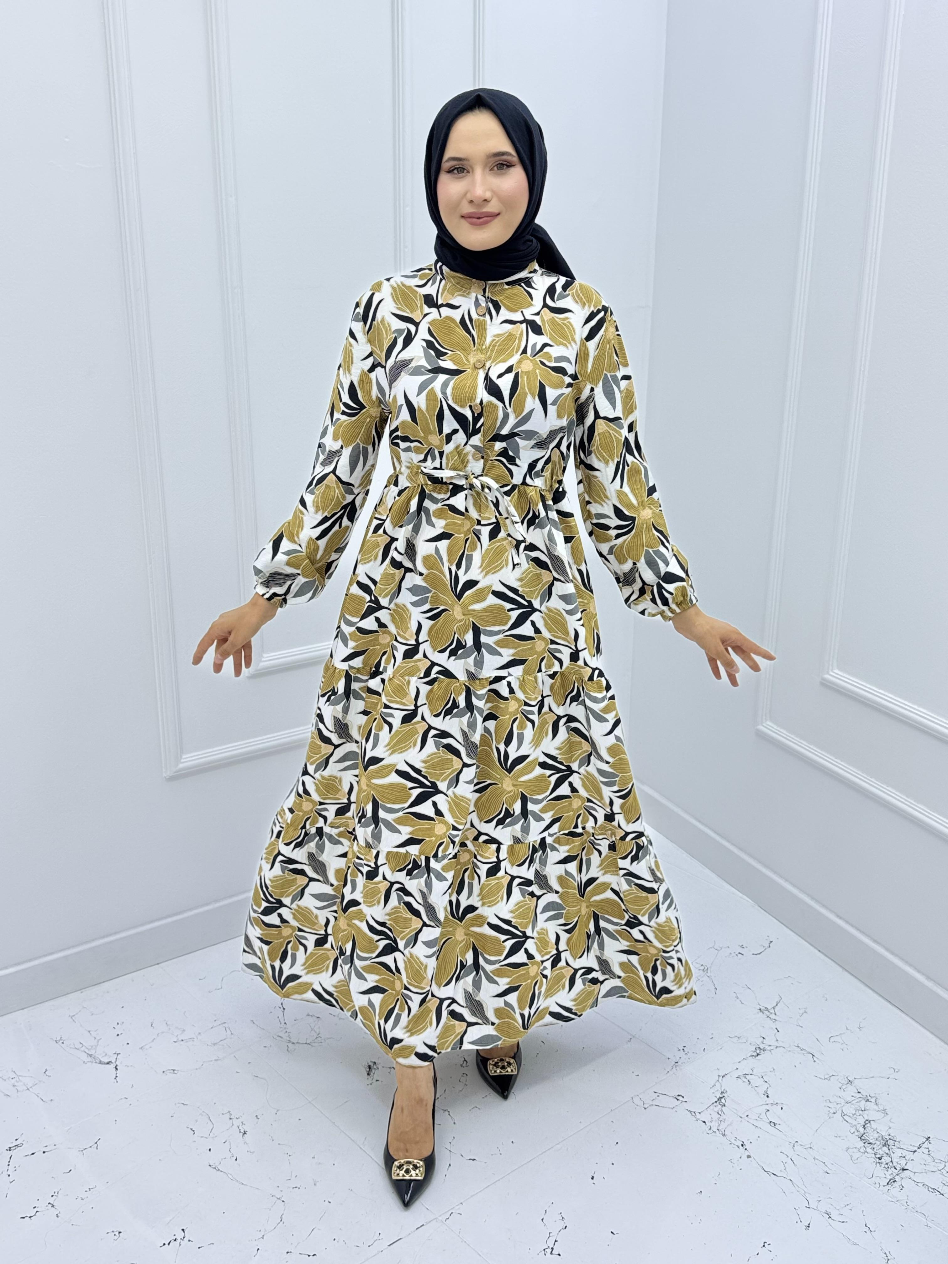 3789 MODAL KUMAŞ ÇİÇEK DESENLİ ELBİSE ÇOK RENKLİ 17 (3789)