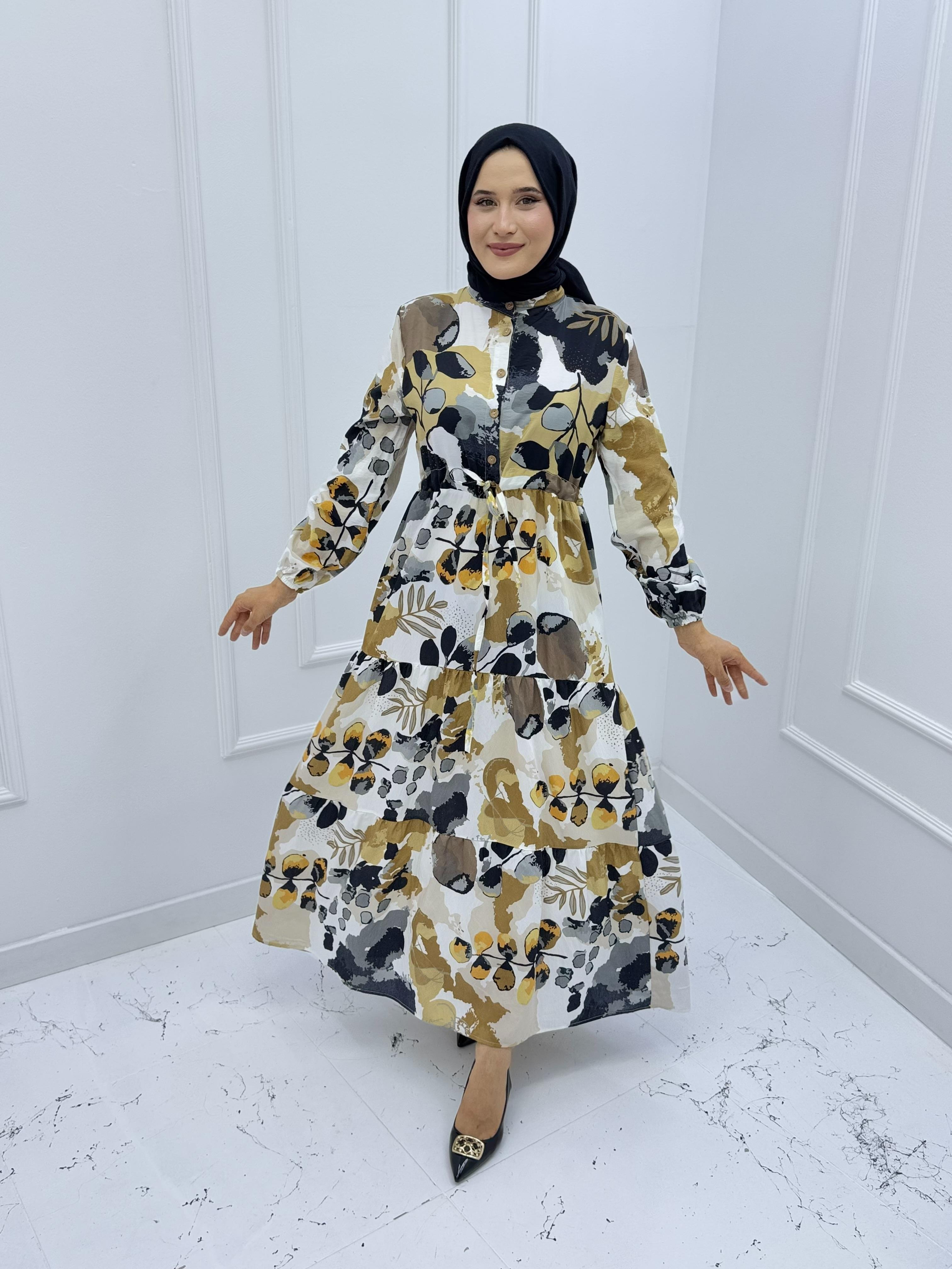 3789 MODAL KUMAŞ ÇİÇEK DESENLİ ELBİSE ÇOK RENKLİ 18 (3789)