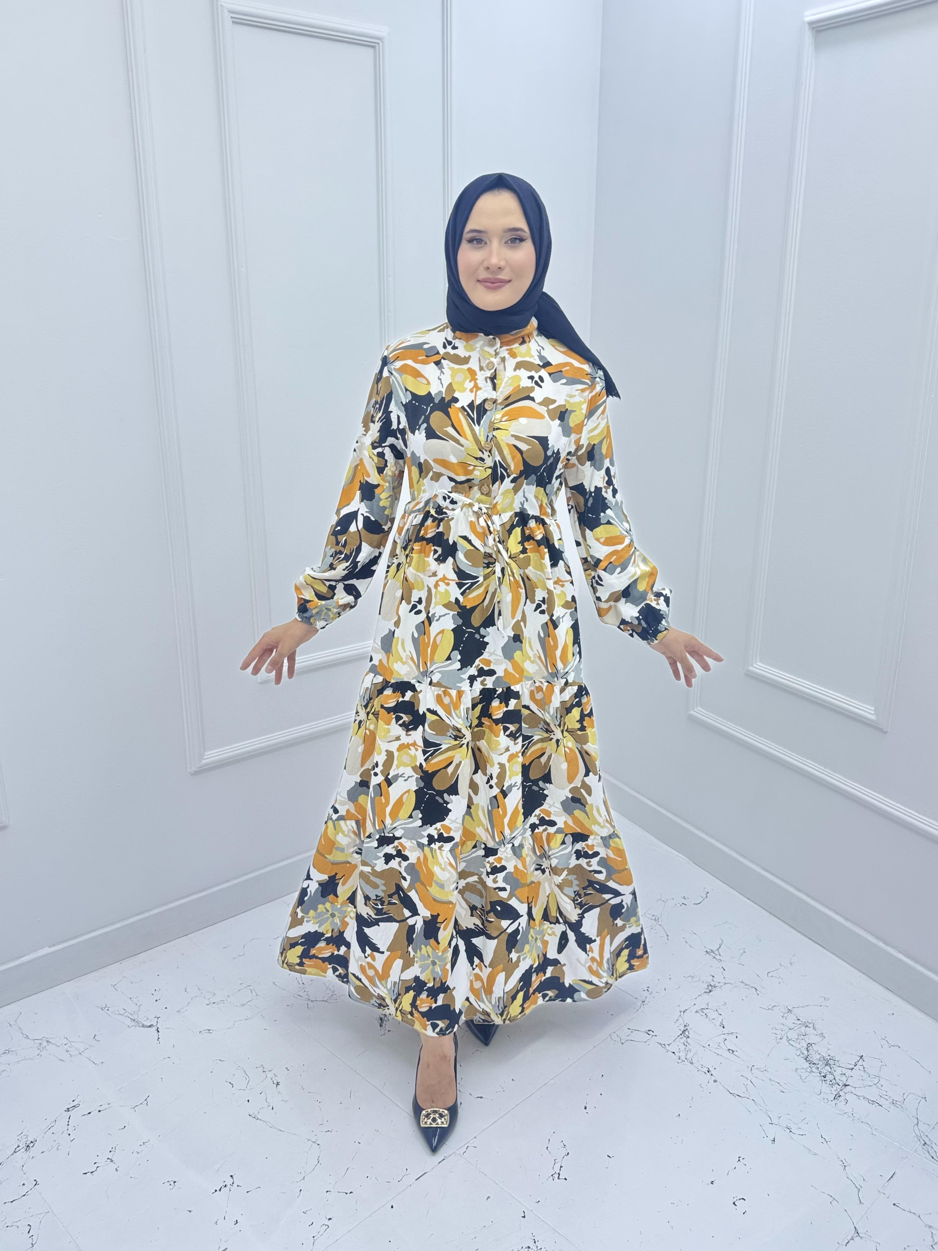3789 MODAL KUMAŞ ÇİÇEK DESENLİ ELBİSE ÇOK RENKLİ 6 (3789)