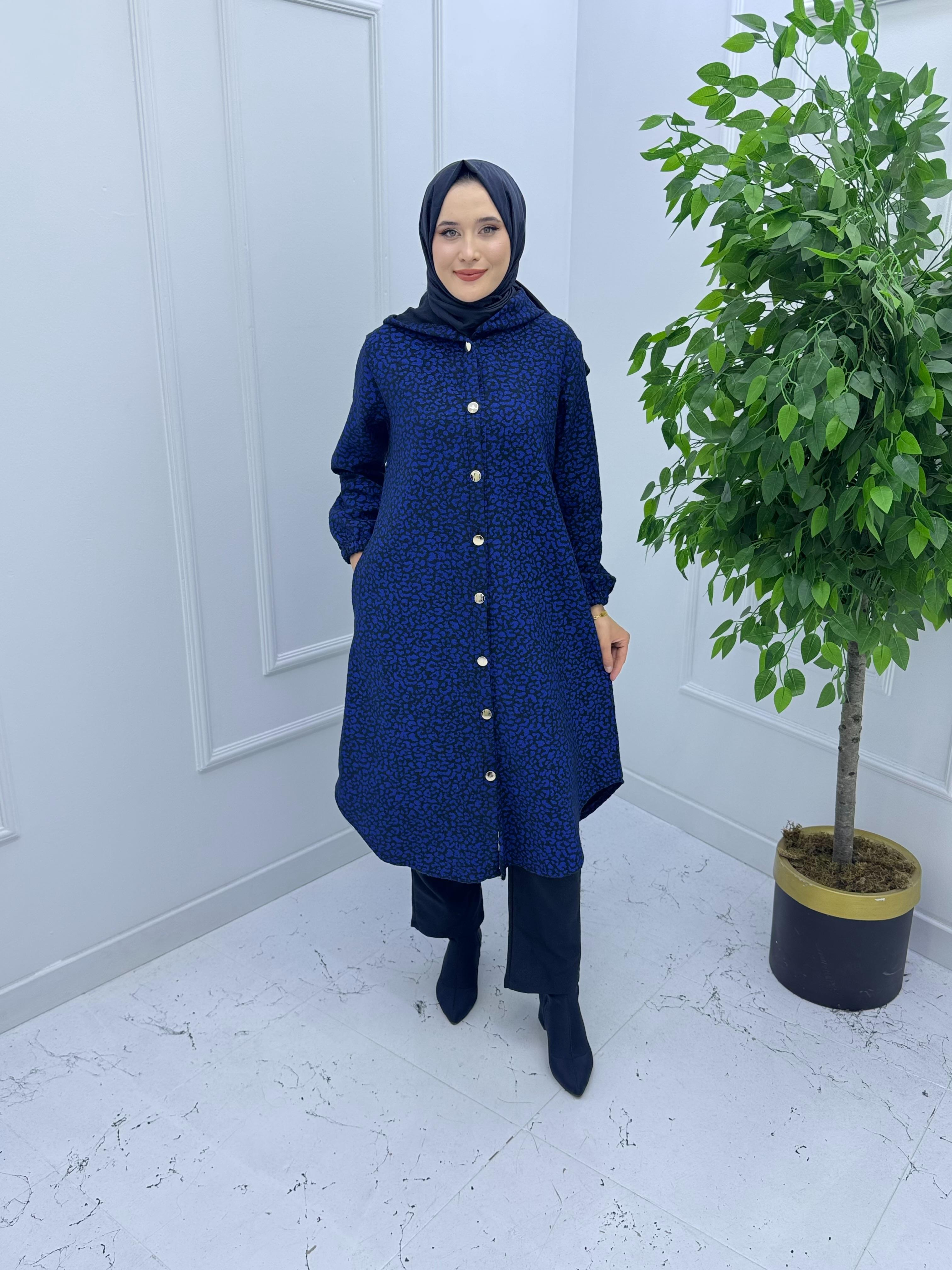 4683 KAŞE KUMAŞ BOYDAN DÜĞMELİ KAPŞONLU CEKET MAVİ (4683)