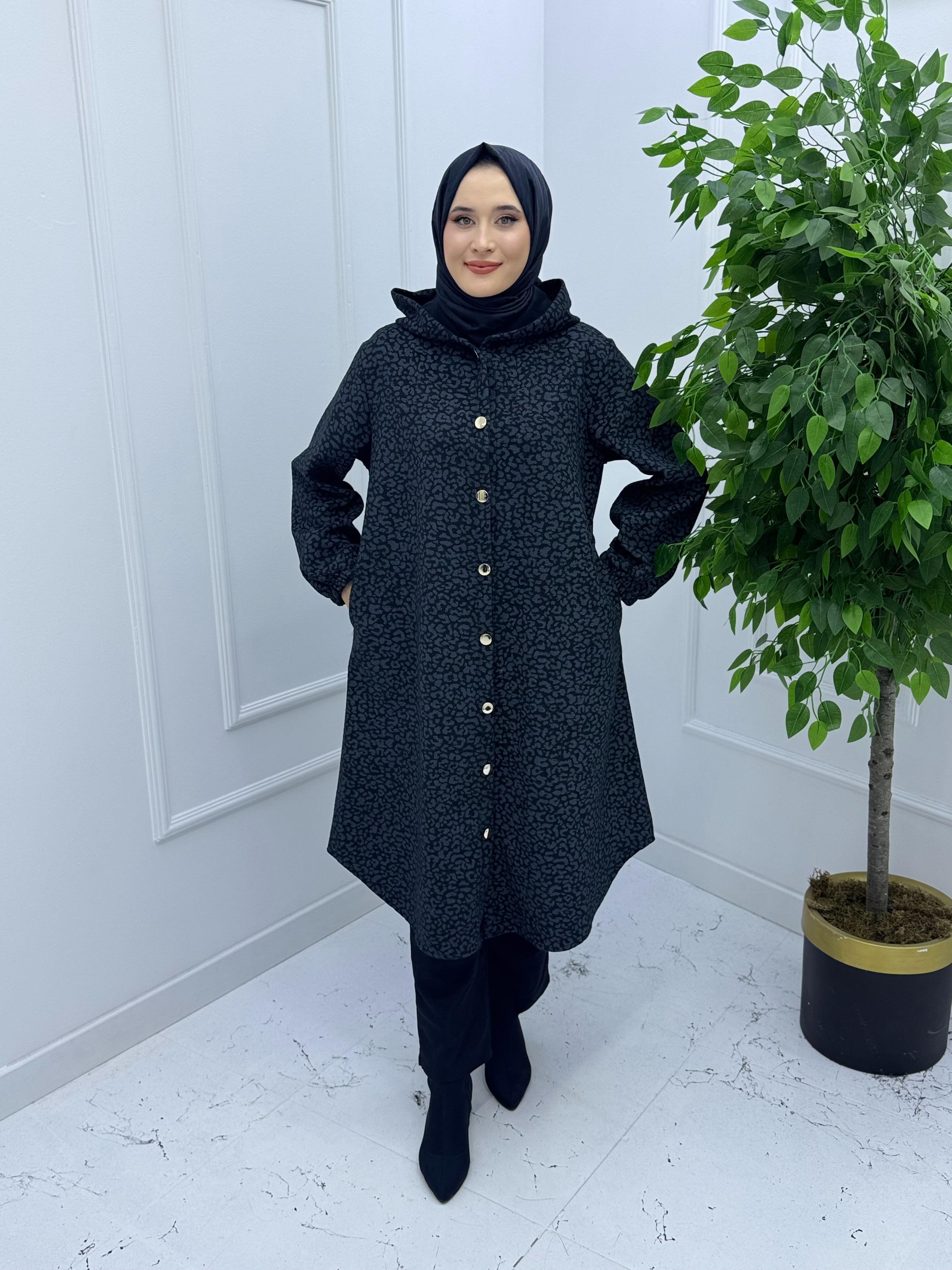4683 KAŞE KUMAŞ BOYDAN DÜĞMELİ KAPŞONLU CEKET YEŞİL (4683)