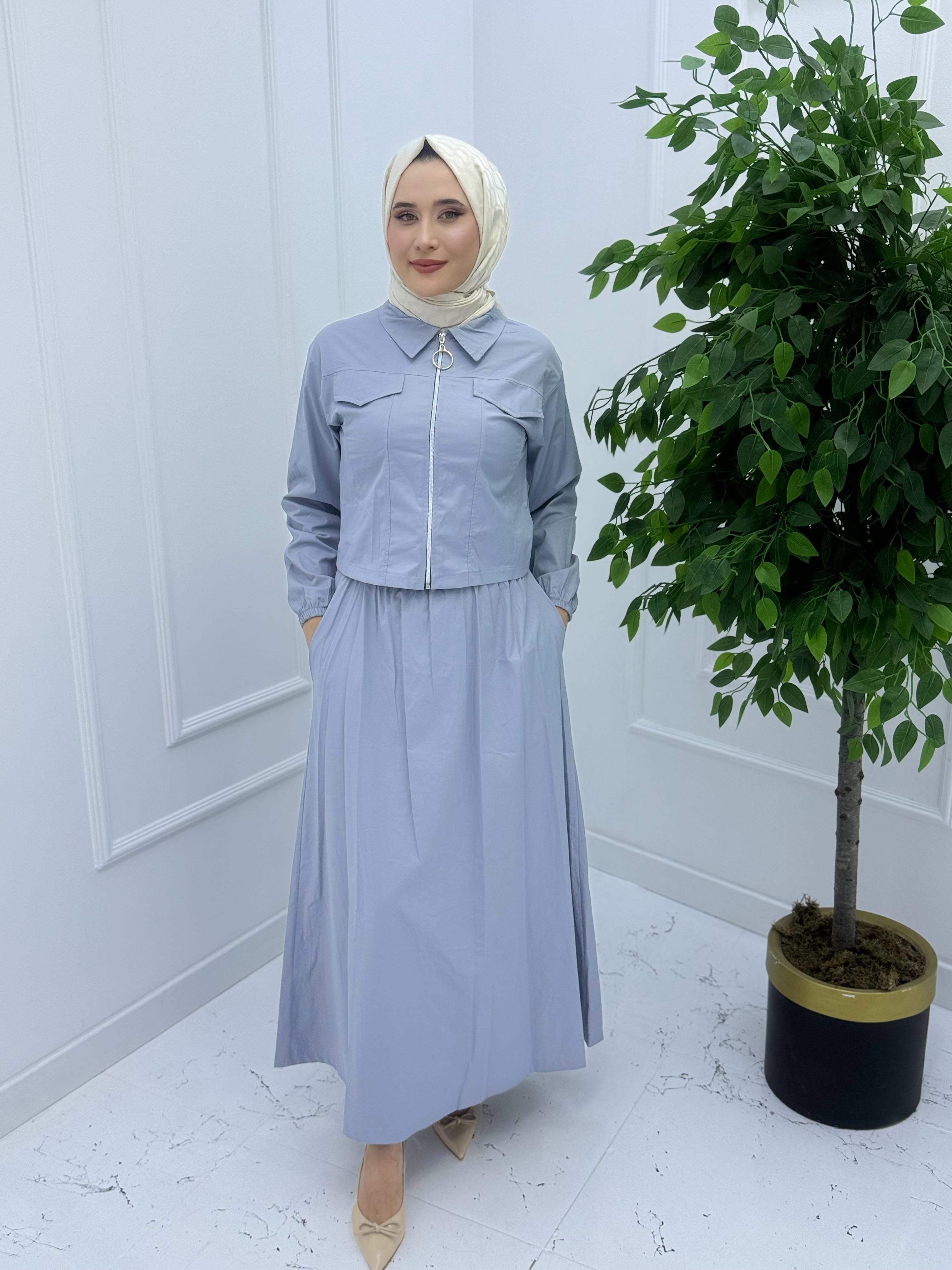 5560 GABARDİN KUMAŞ ETEKLİ TAKIM GRİ (5560)