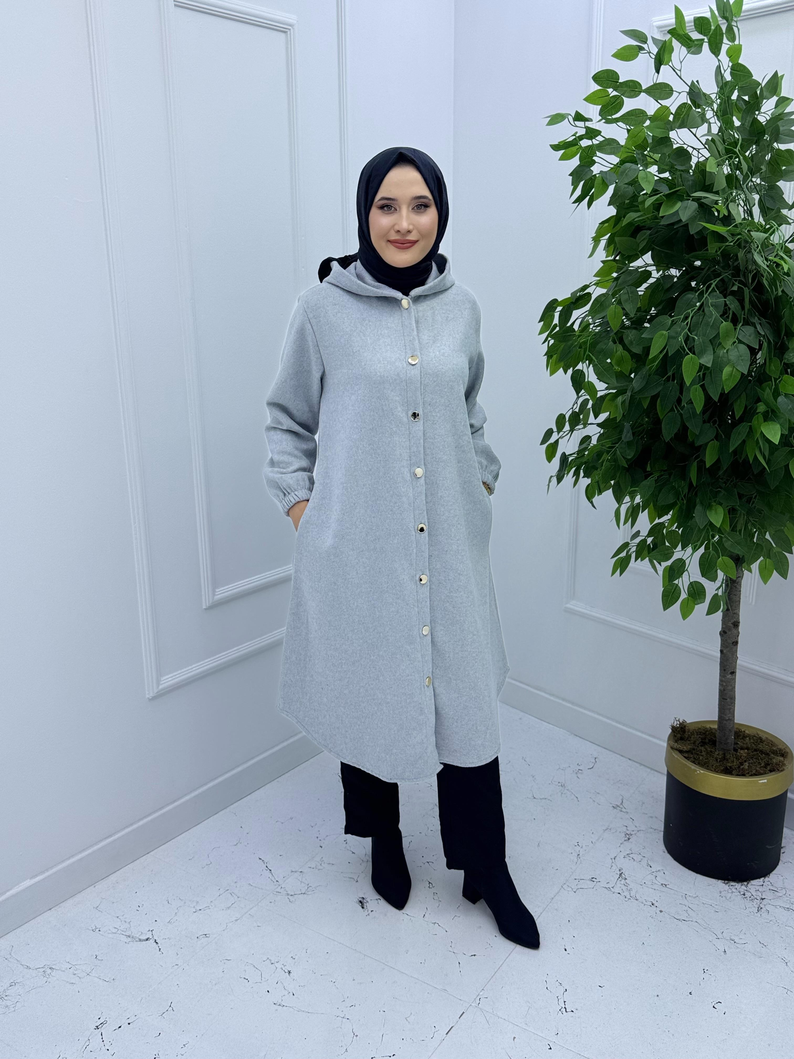 5930 KAŞE KUMAŞ BOYDAN DÜĞMELİ DÜZ DESEN CEKET GRİ (5930)