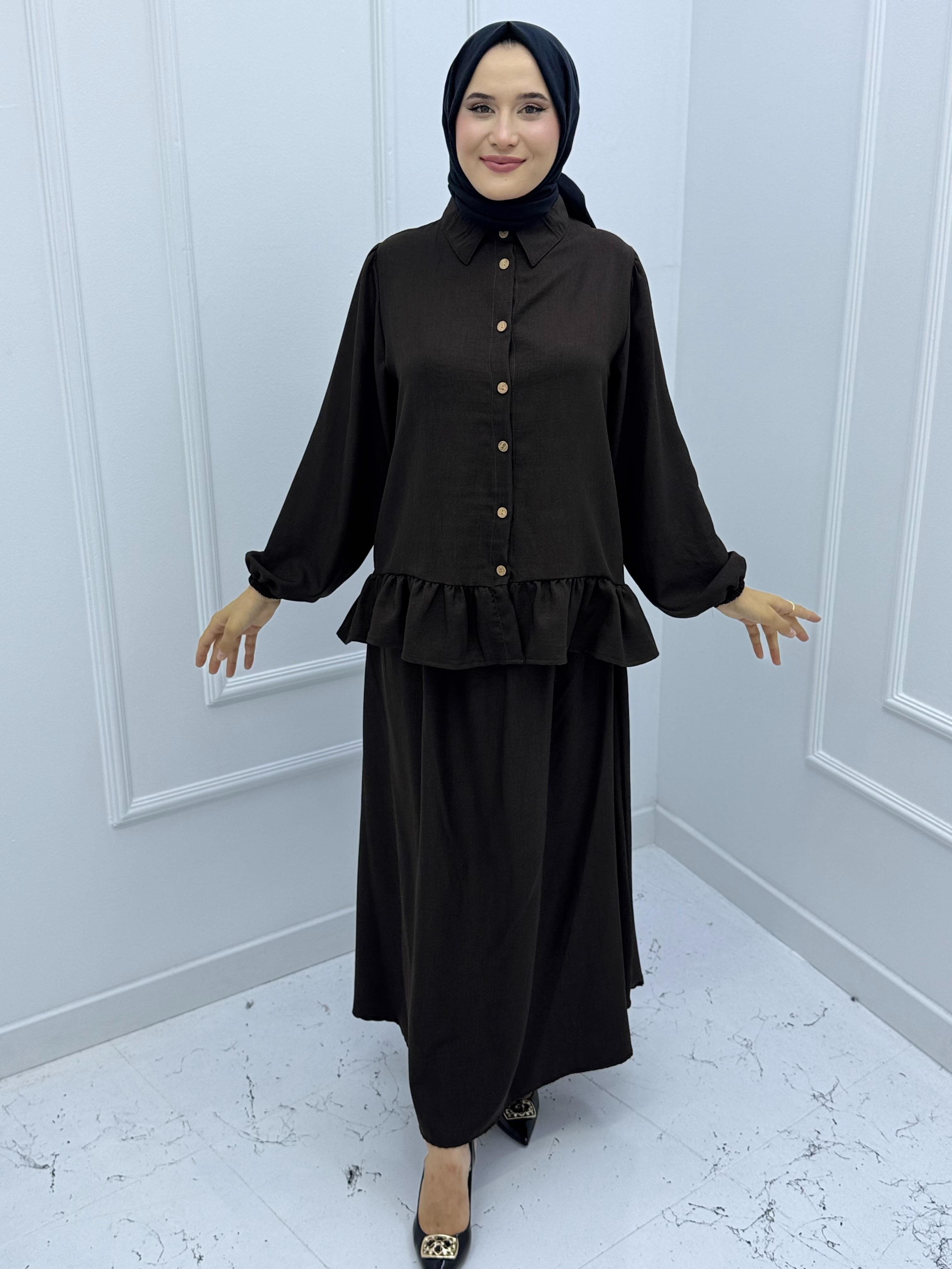 8581 SELİN SOFYA KETEN ETEKLİ TAKIM KAHVERENGİ (8581 )