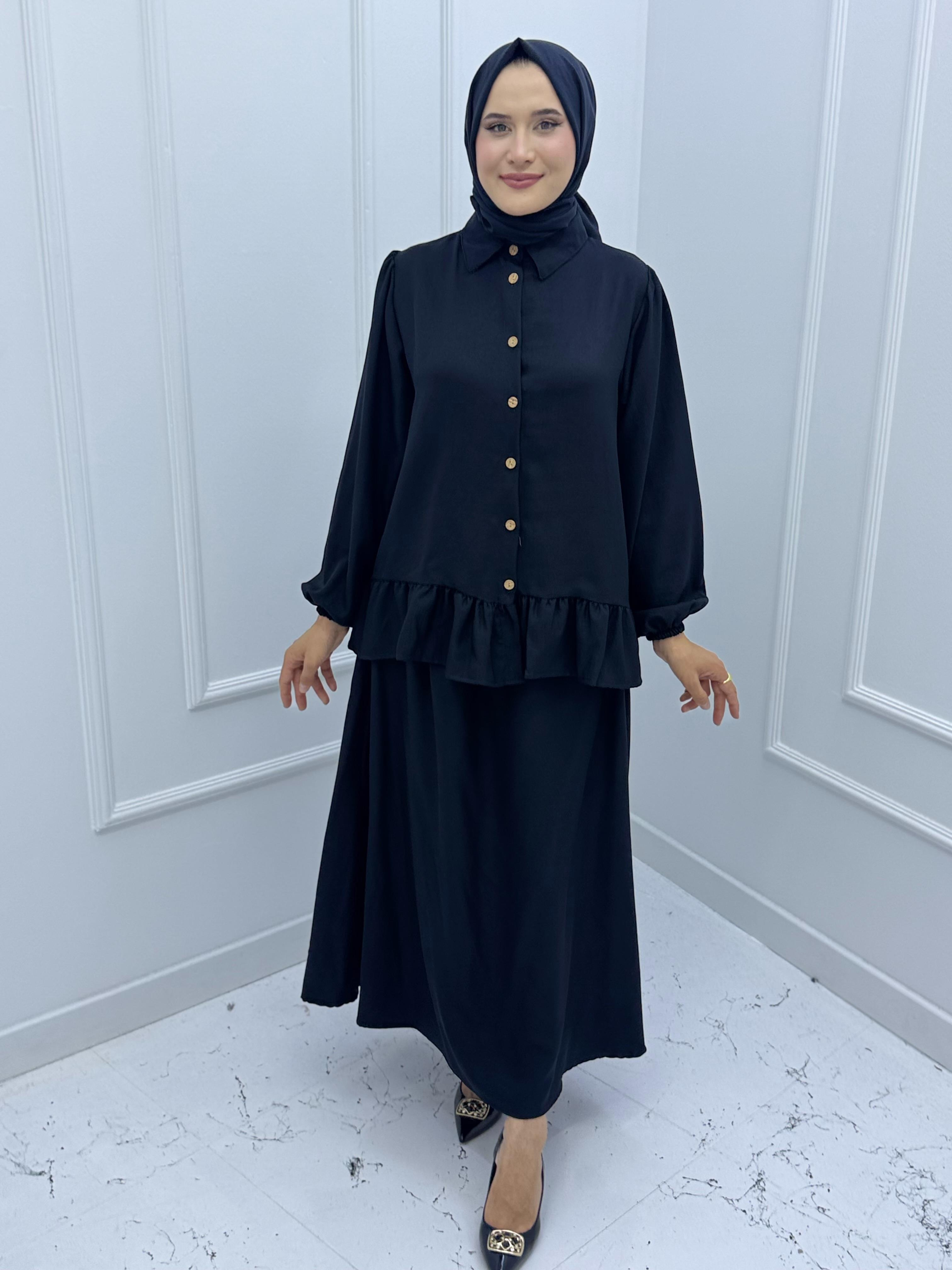 8581  SELİN SOFYA KETEN ETEKLİ  TAKIM  SİYAH