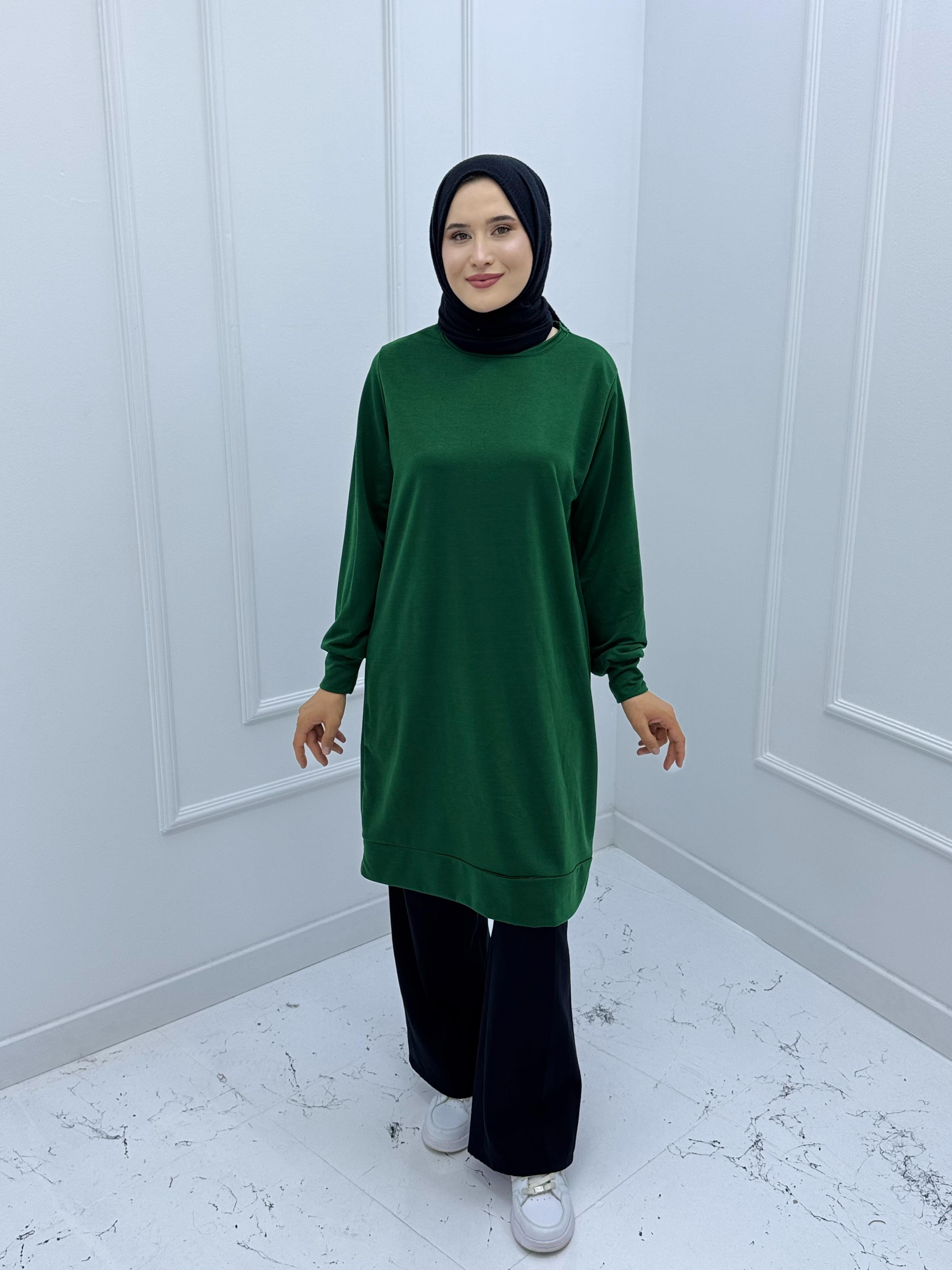 İKİ İPLİK DÜZ TUNİK ZÜMRÜT YEŞİLİ (7168 )