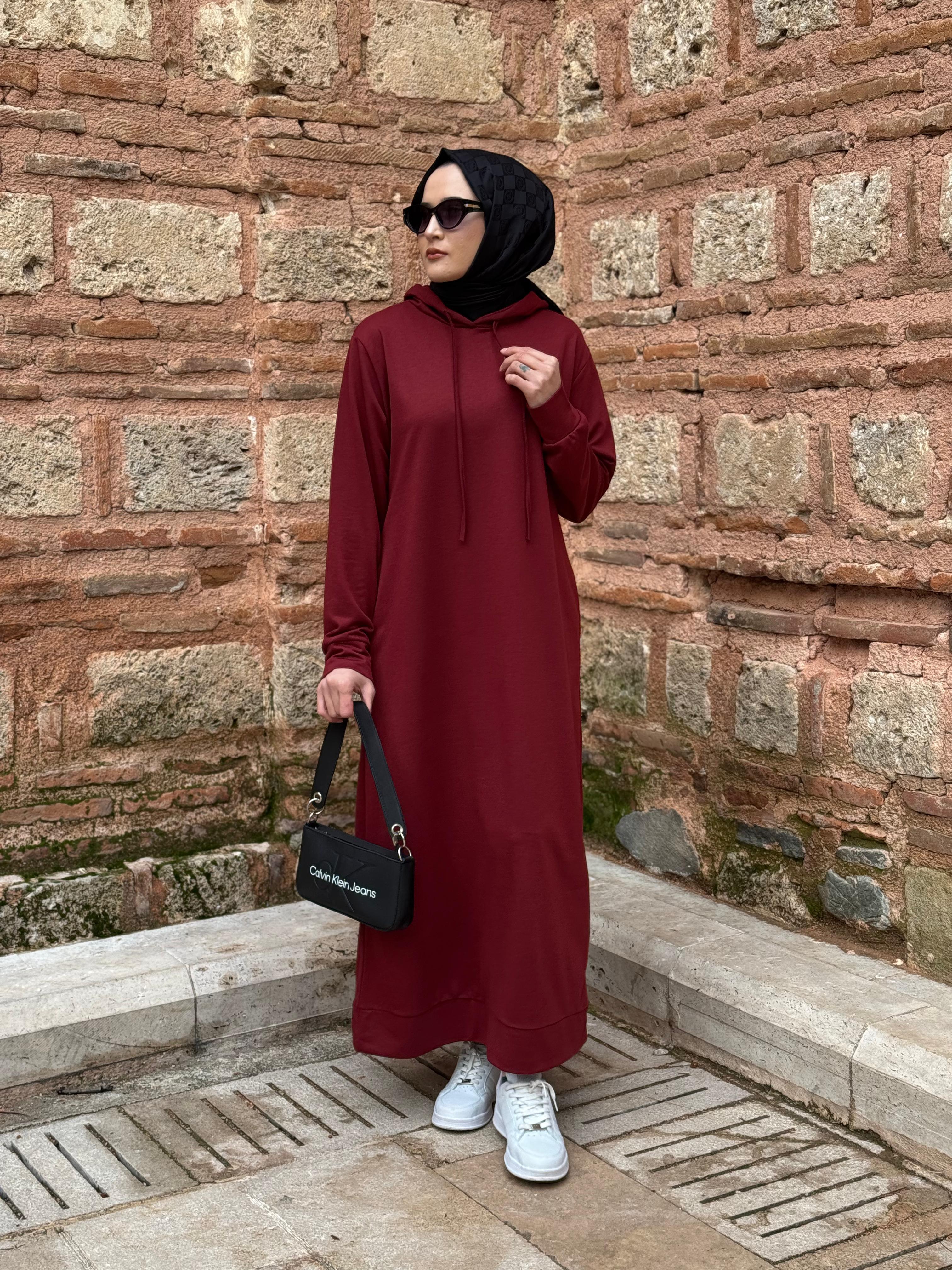 İKİ İPLİK KAPŞONLU SPOR ELBİSE BORDO